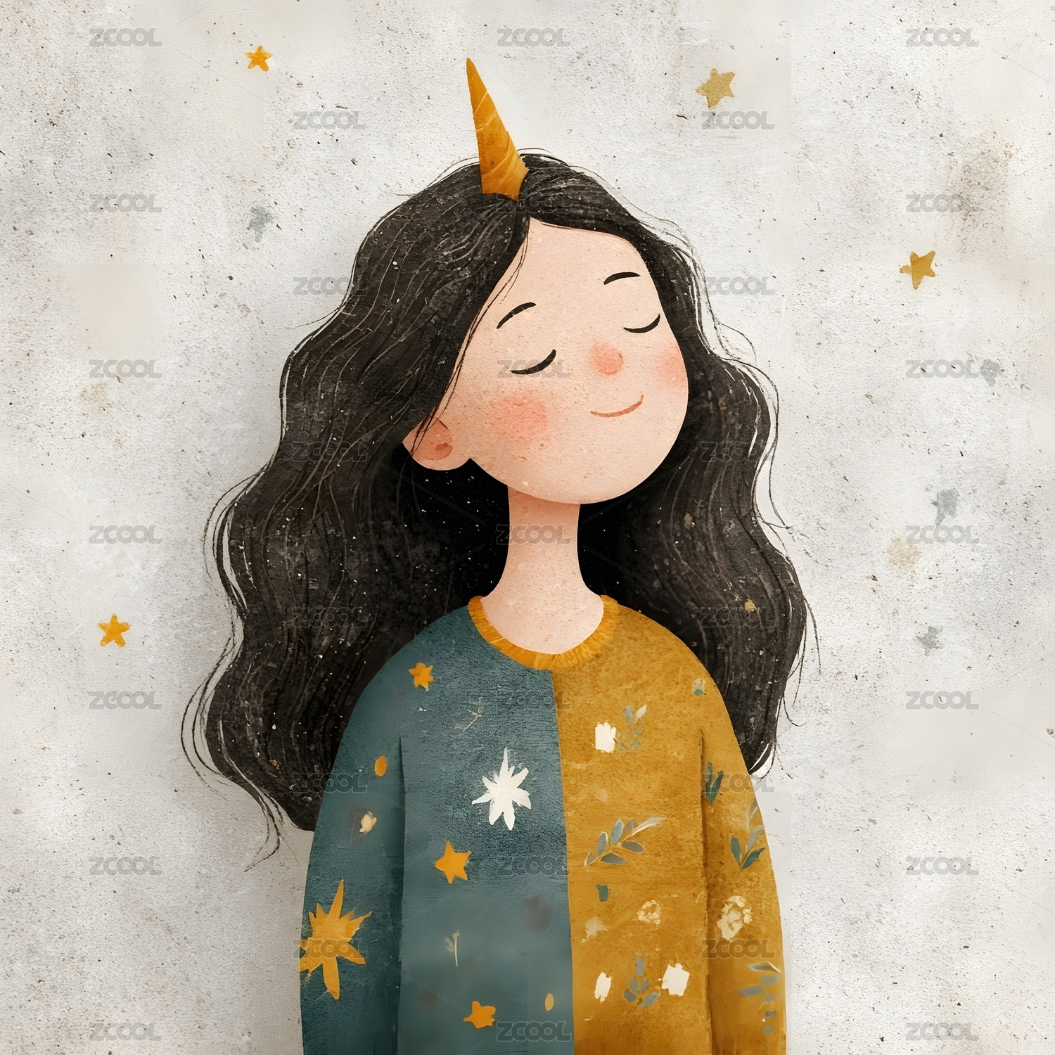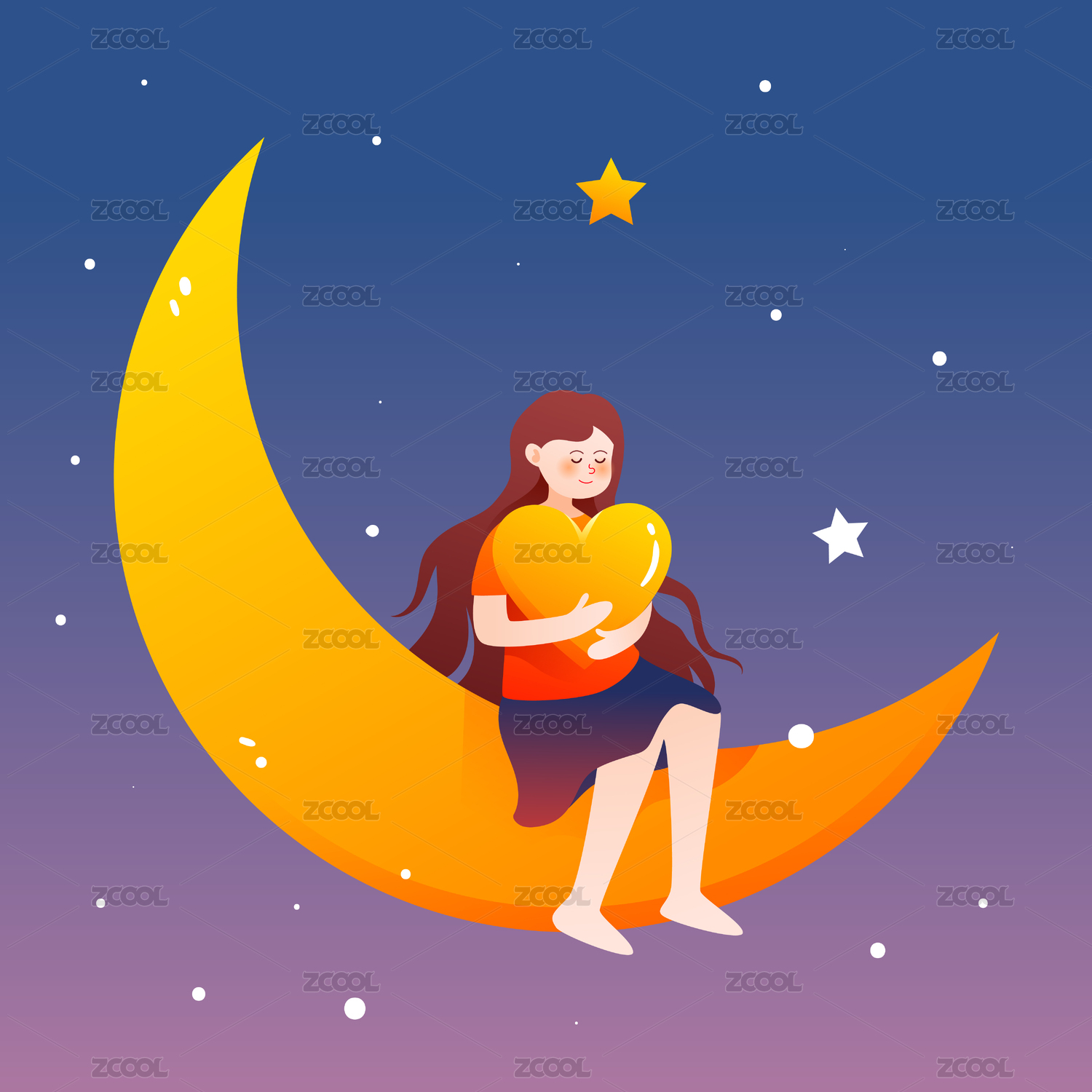 世界睡眠日女孩抱着月亮睡觉童话世界插画