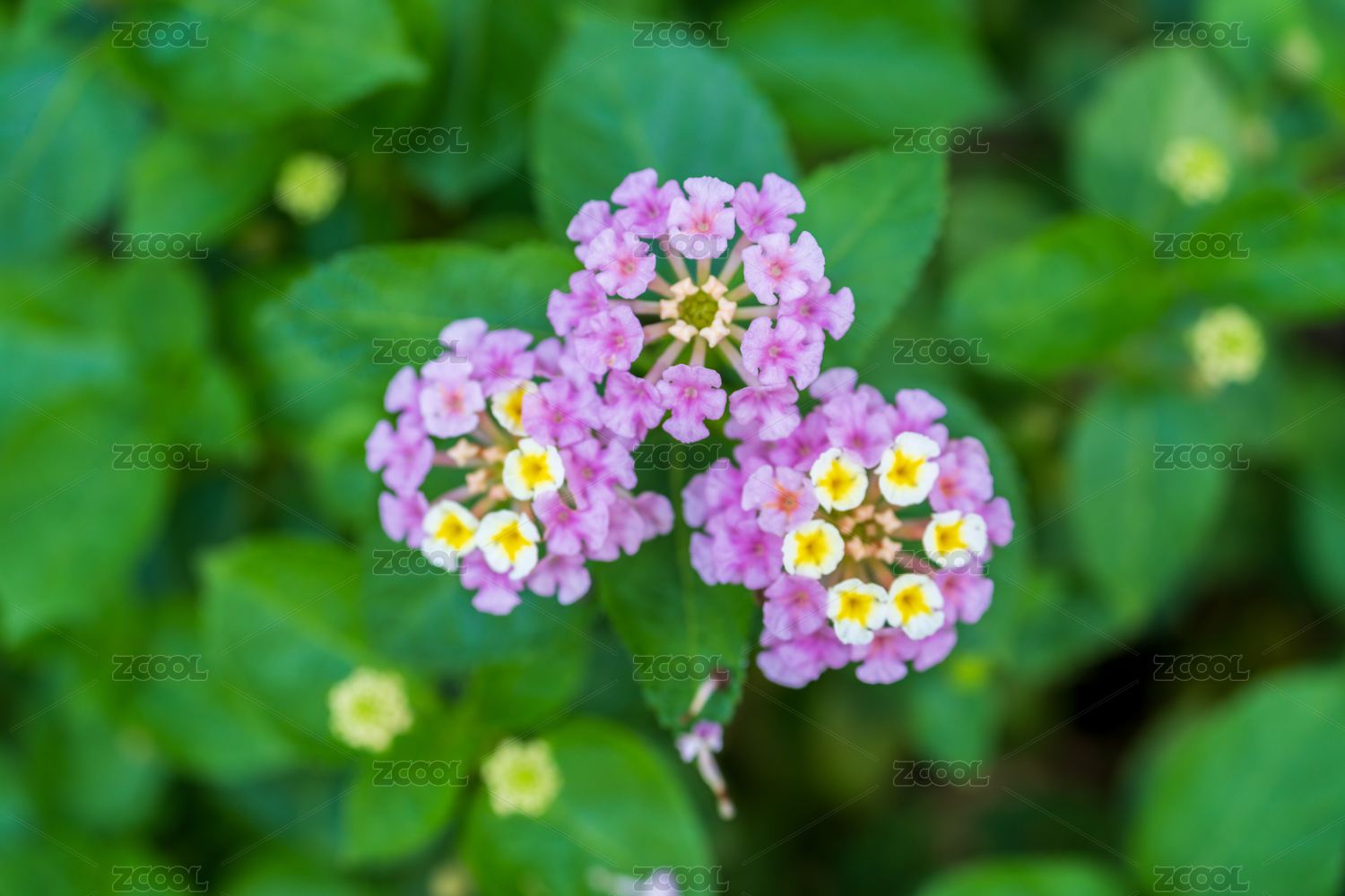 绿叶衬托的清新淡雅蔓马缨丹花朵