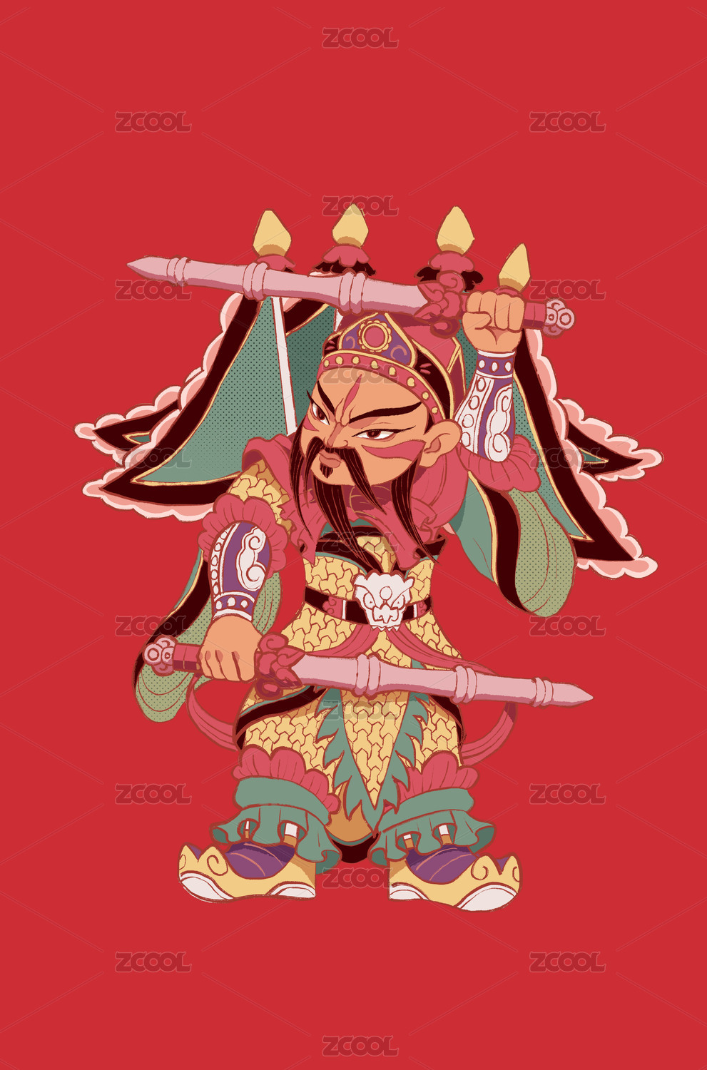 手持针筒脚踩平衡车身穿绿衣的门神关羽