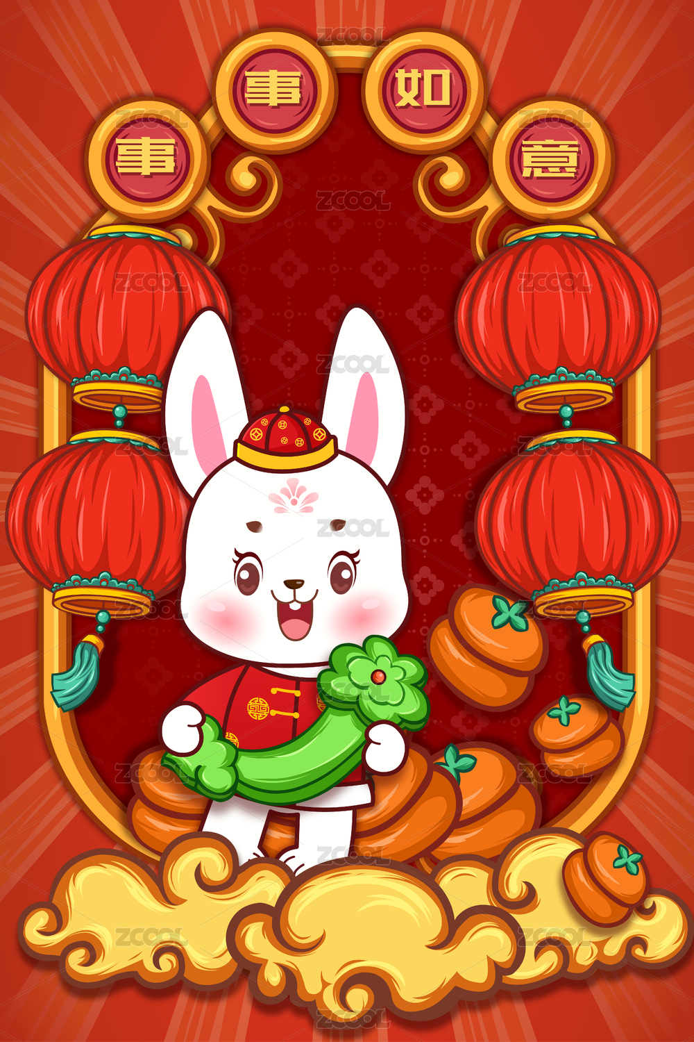 新年兔年事事如意卡通插画