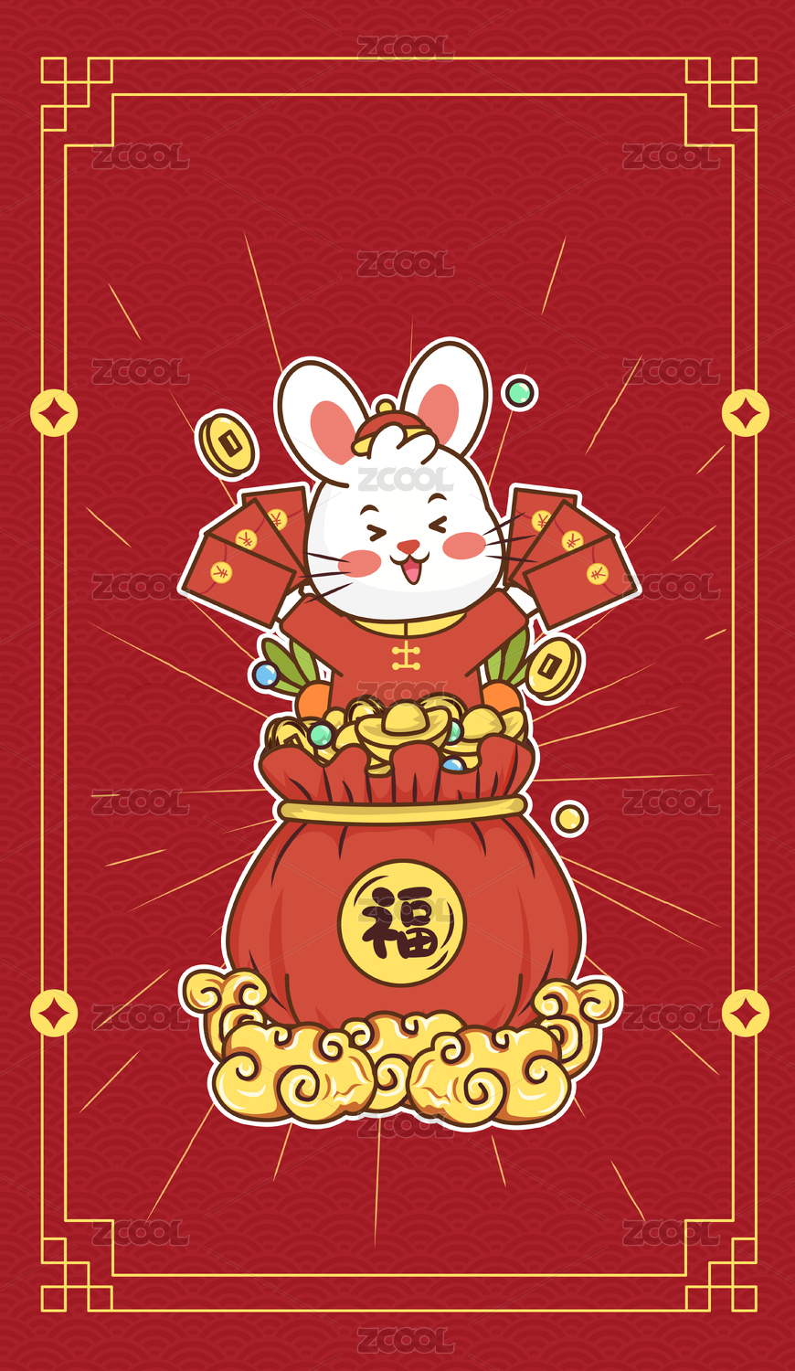 兔年国潮红包封面插画