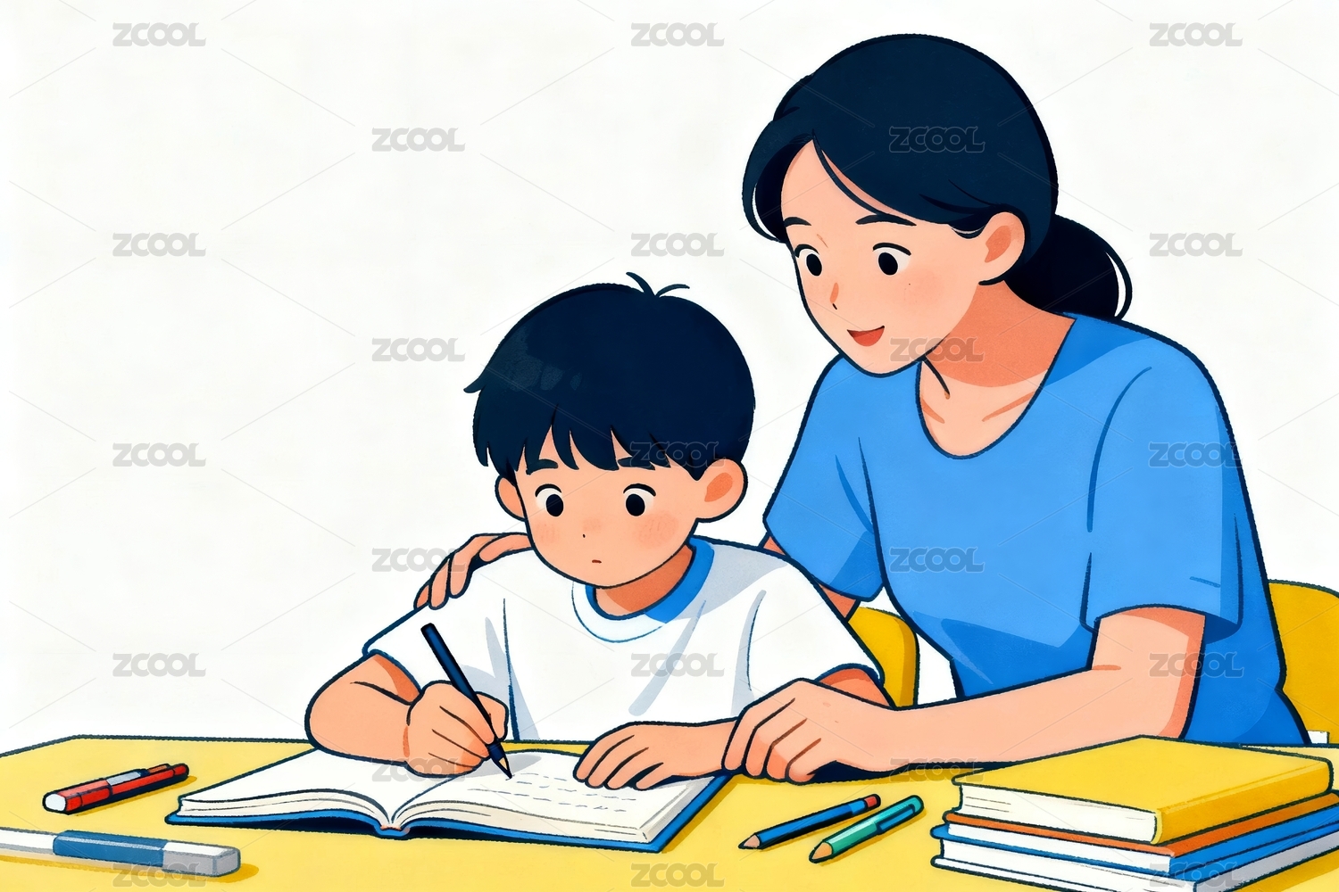 在家辅导功课插画