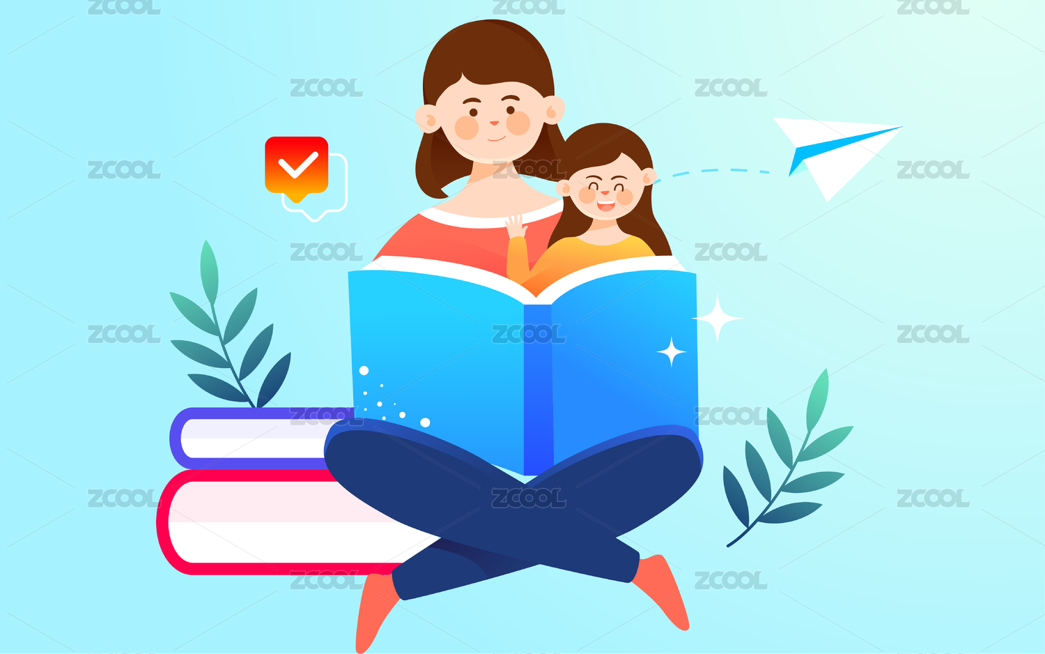 开学季亲子教育阅读世界读书日亲情陪伴插画