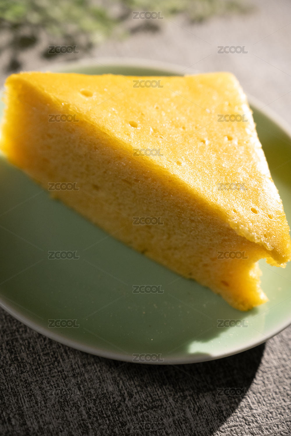 桌面上的盘子里的美味可口的古早蛋糕