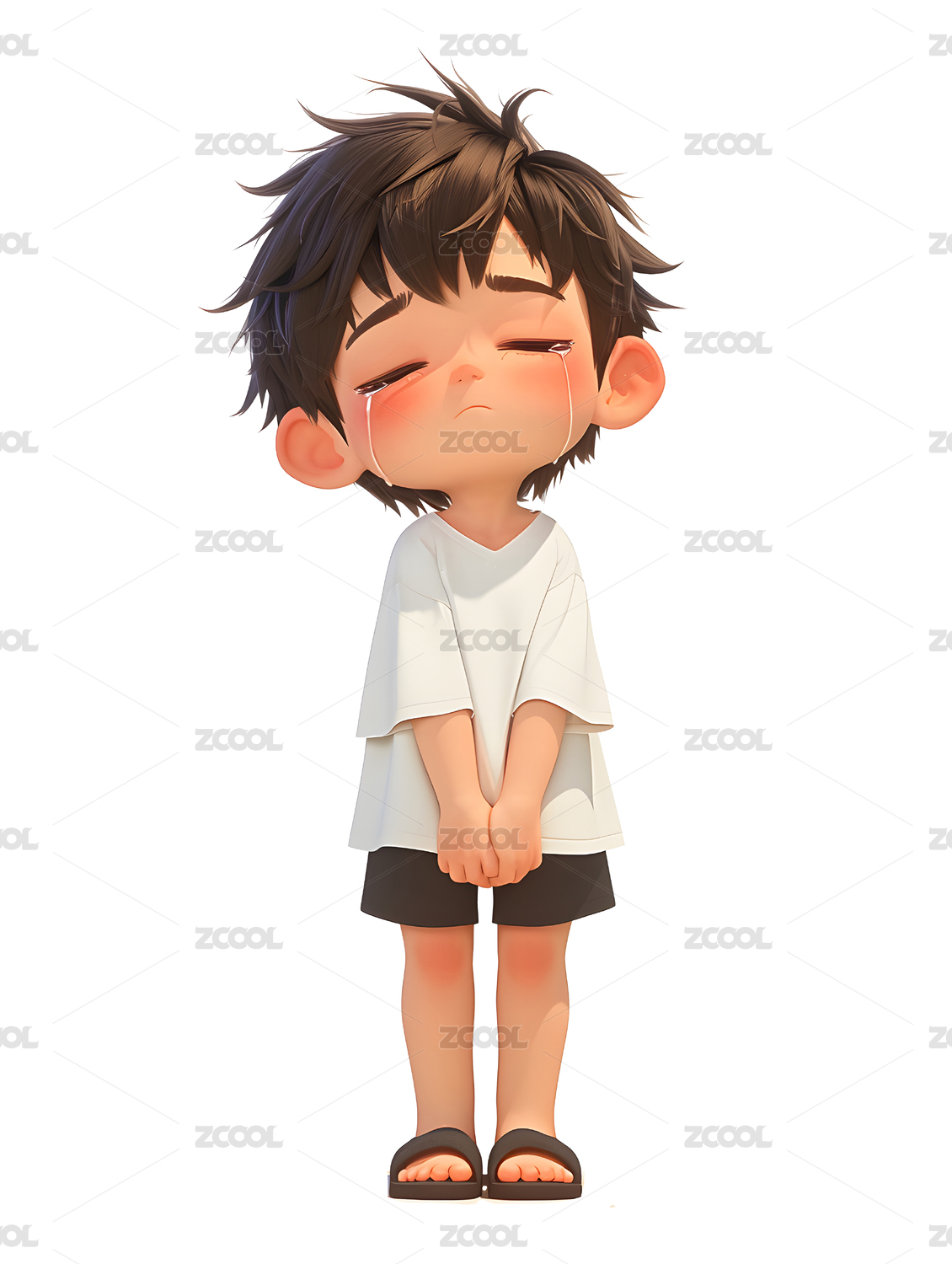 站着伤心哭泣的男孩