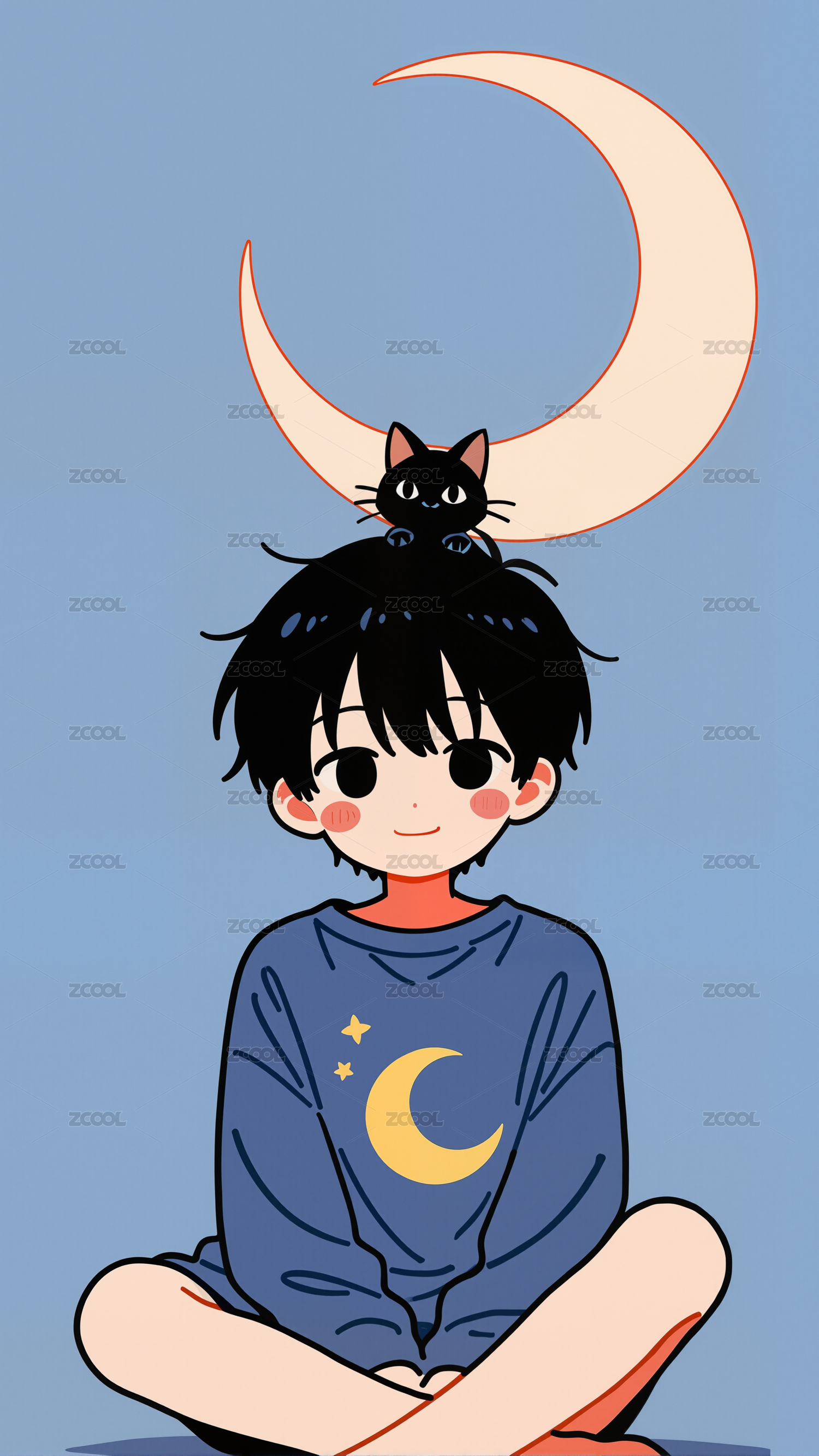 男孩与猫咪插画