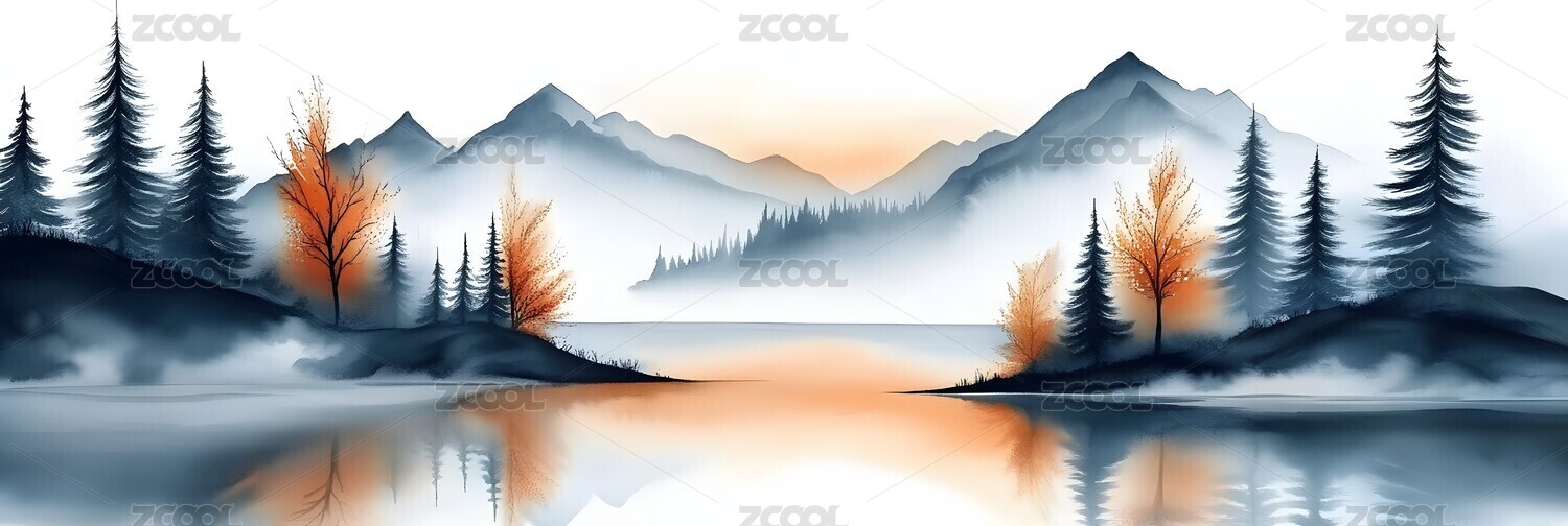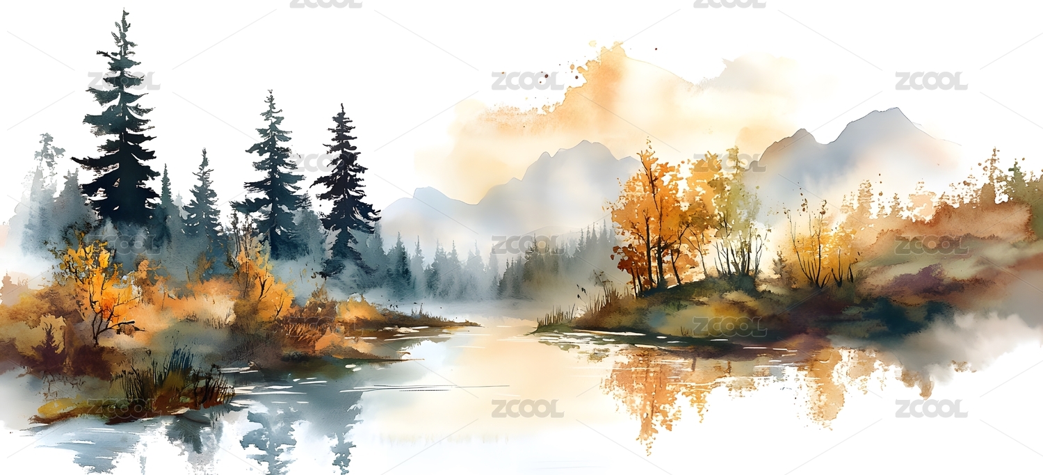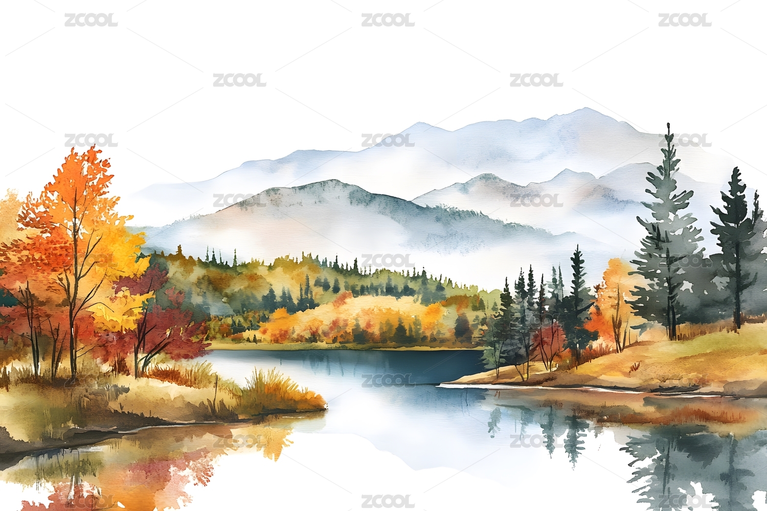 秋景,树林,小路,落叶,枫叶,金色,橙色,红色,水彩画,风景画