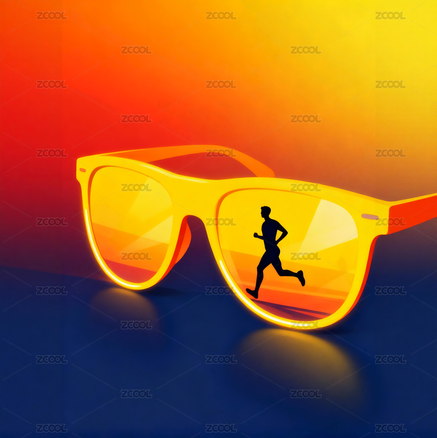 眼镜中奔跑的人创意数字插画艺术