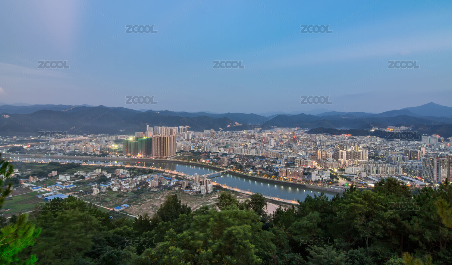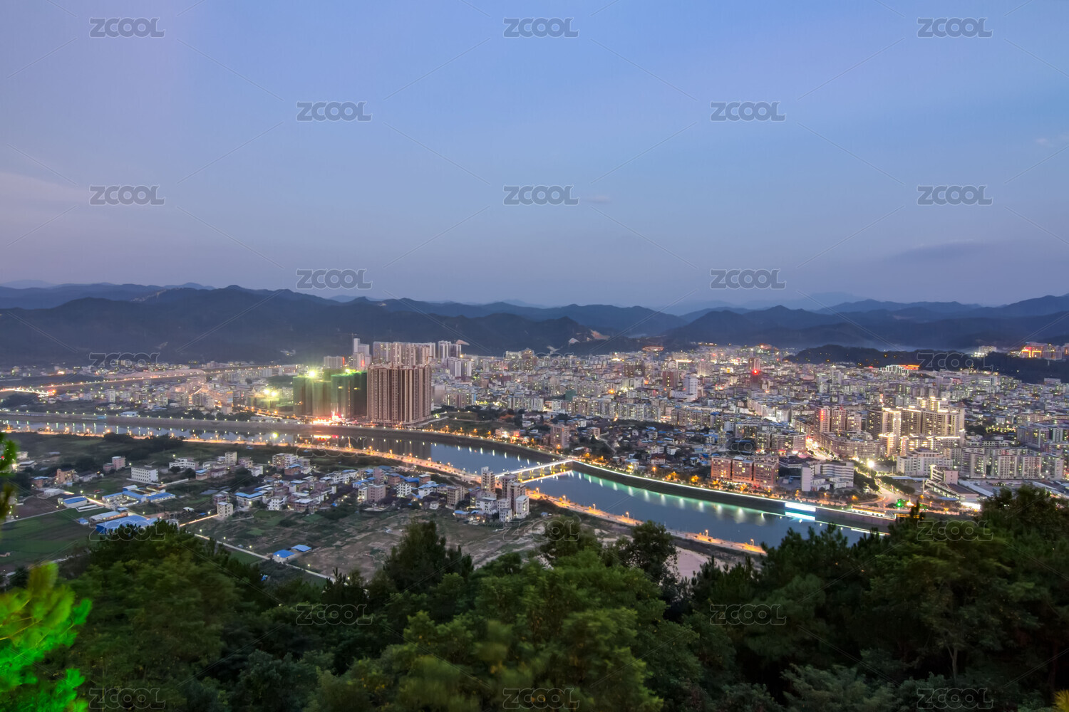 县城,中国,夜景,建筑,河流,天空,景观,梅州,桥梁,城镇