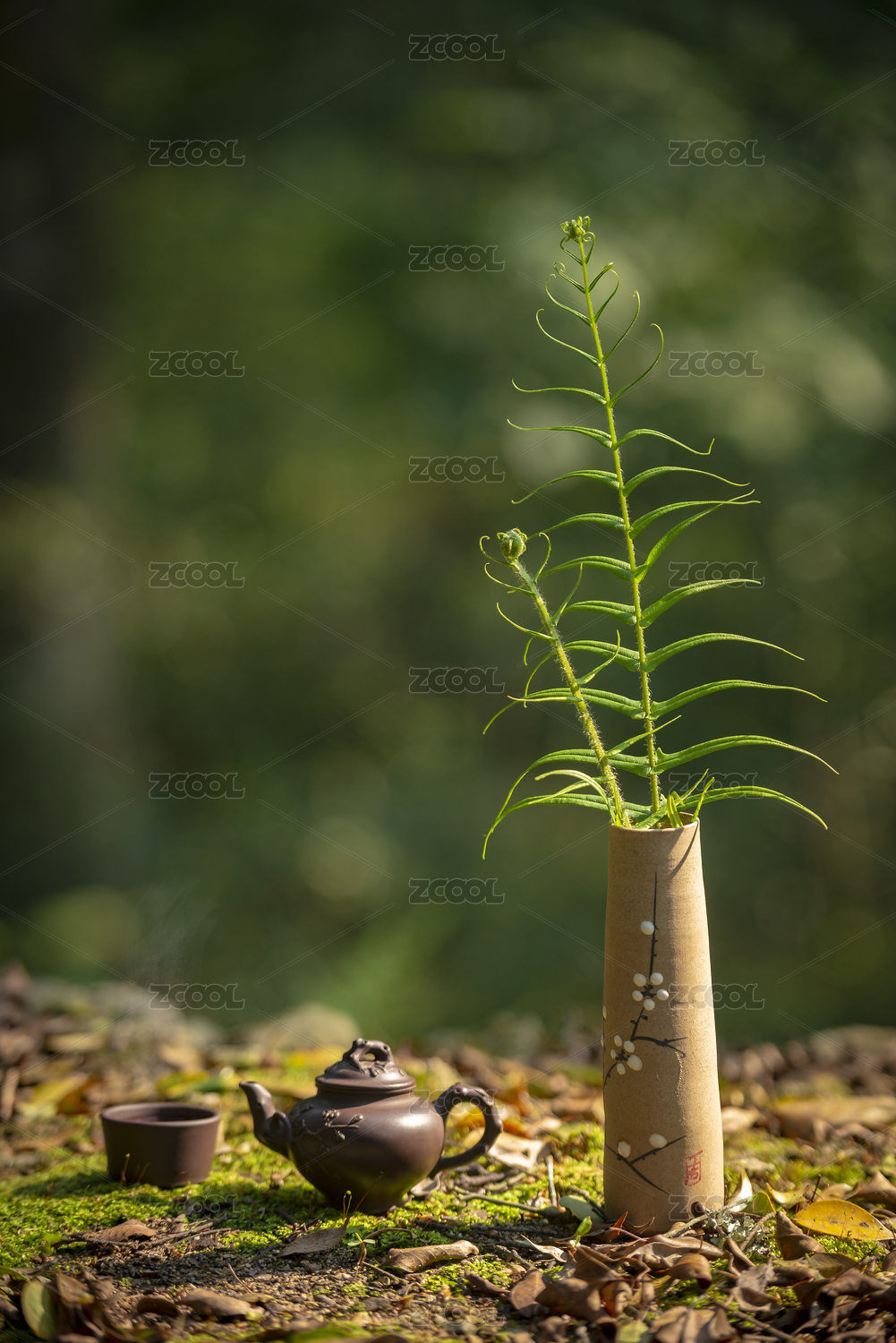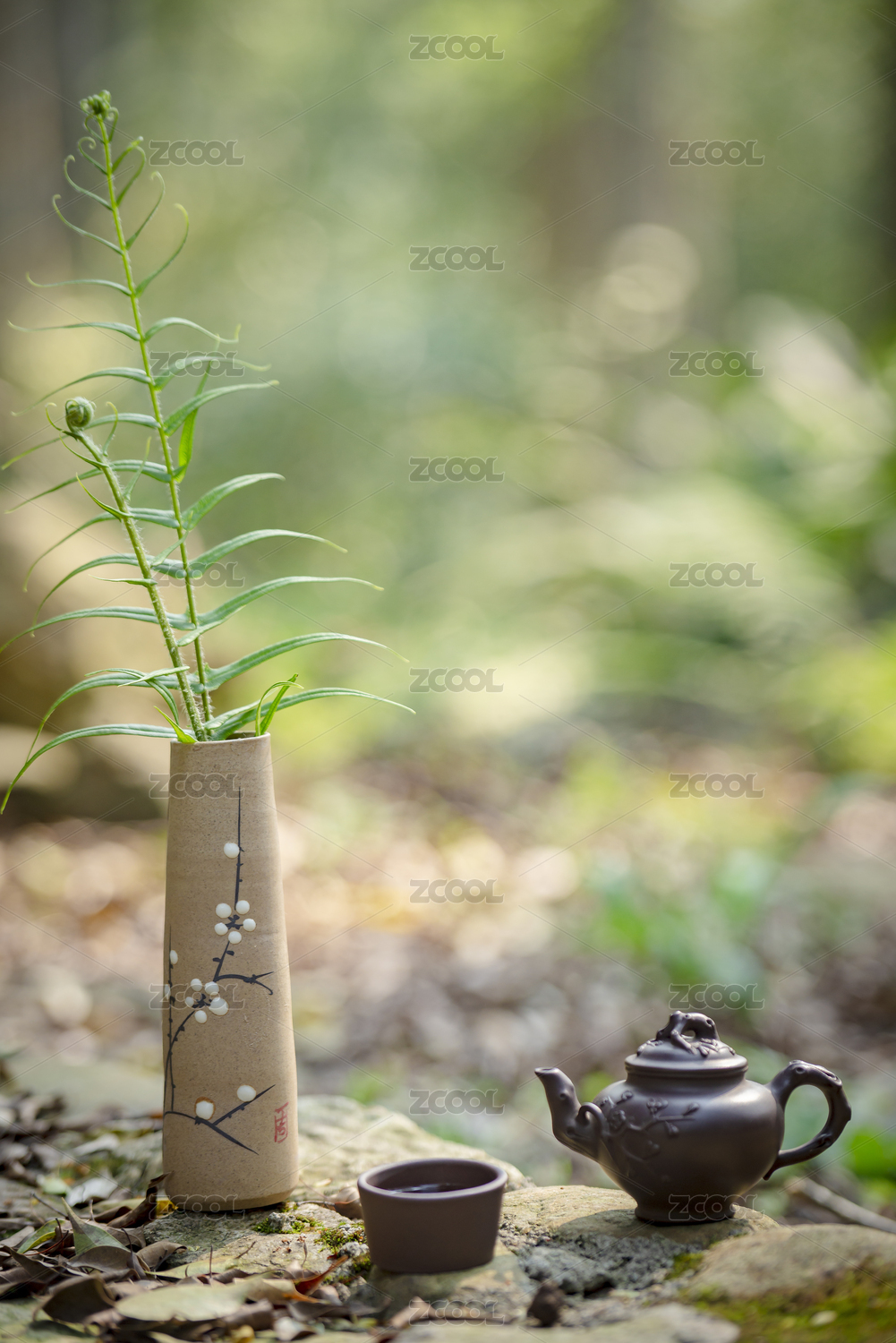 中国风,国潮,植物,风景,茶具,茶杯,紫砂壶,花瓶,公园,户外