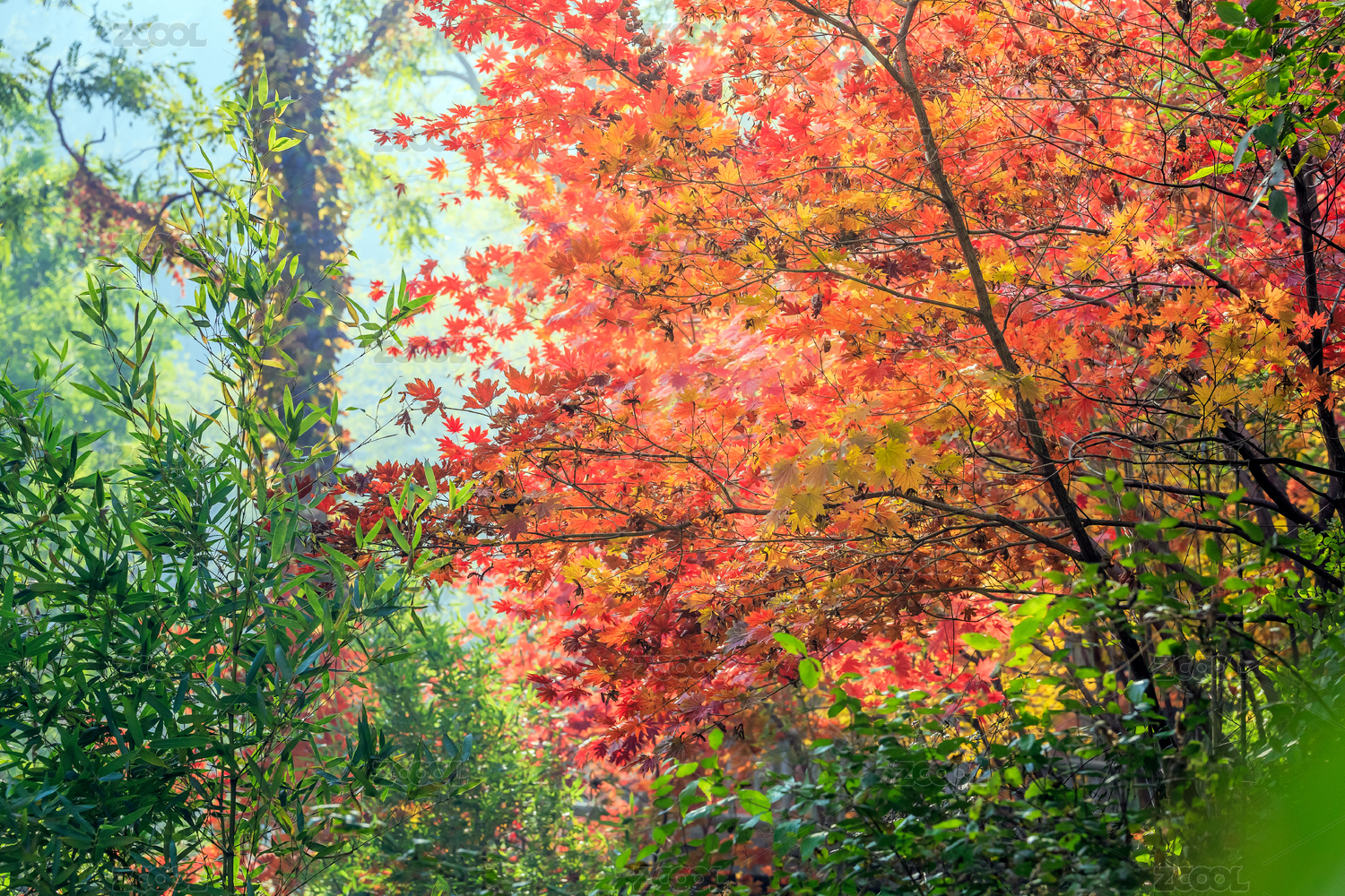 沈阳本溪老边沟,秋日枫树枝头红叶特写