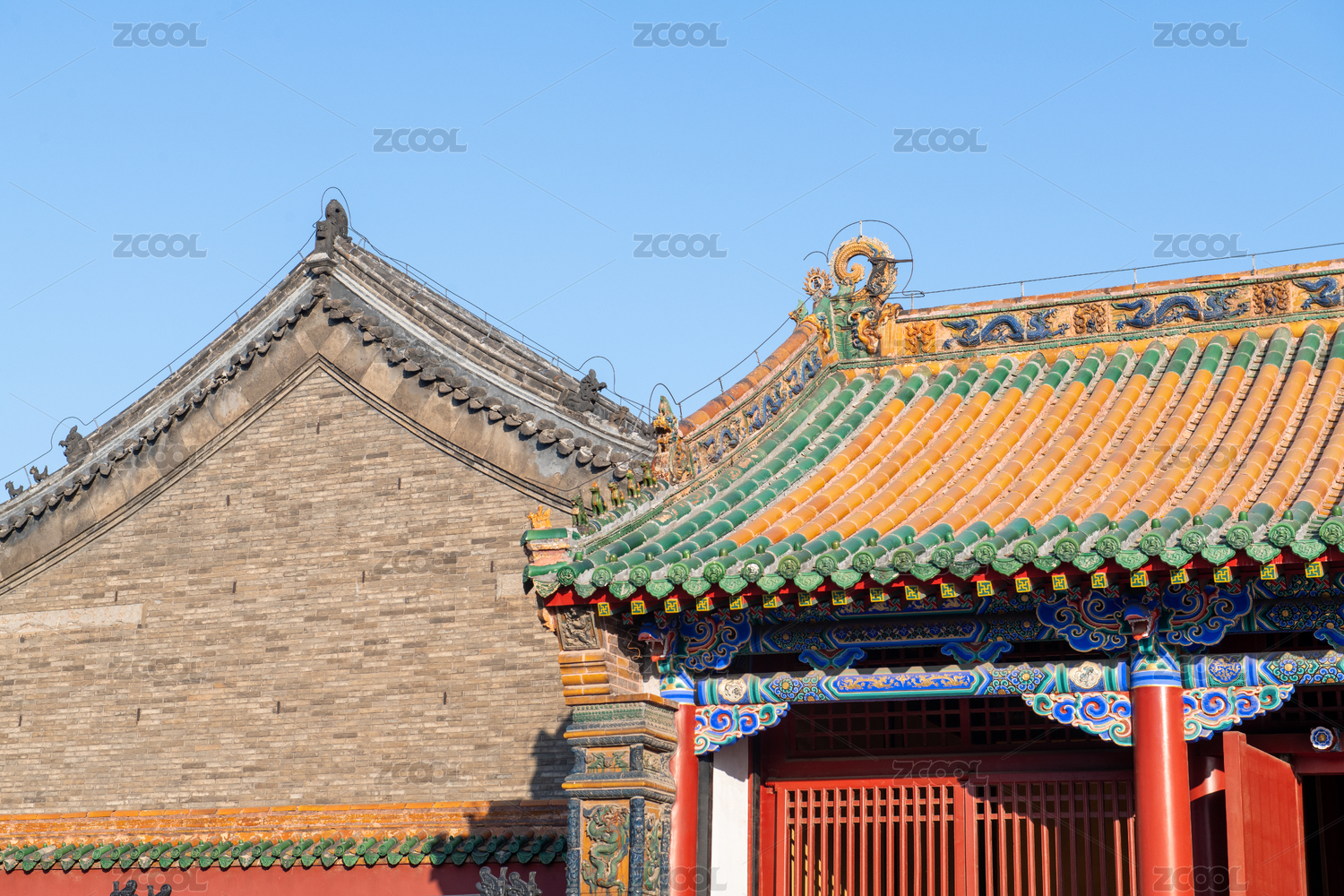 中国山西省洪洞县广胜寺古建筑歇山顶琉璃构件