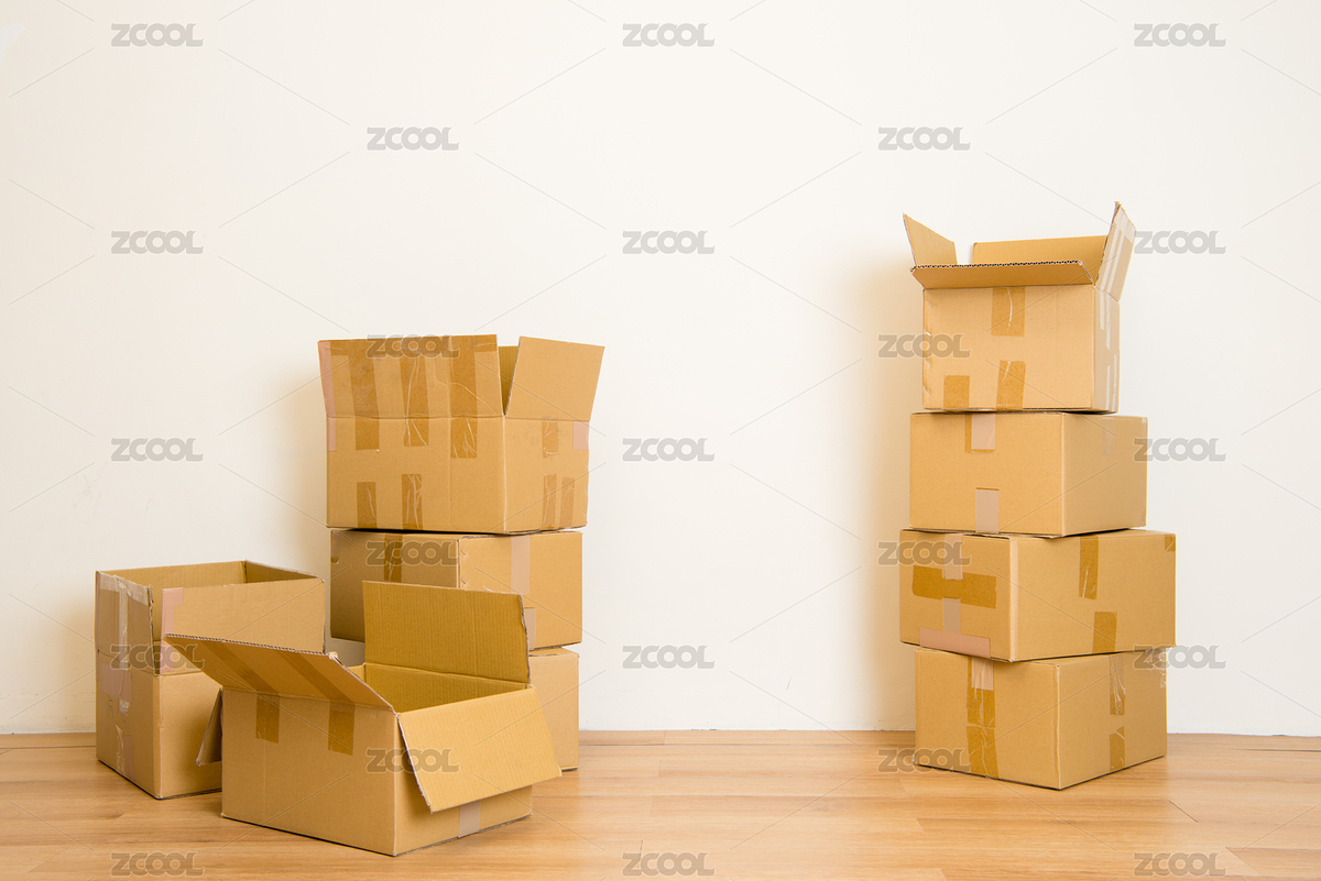 移动堆栈的纸箱在空房间的公寓中的副本空间