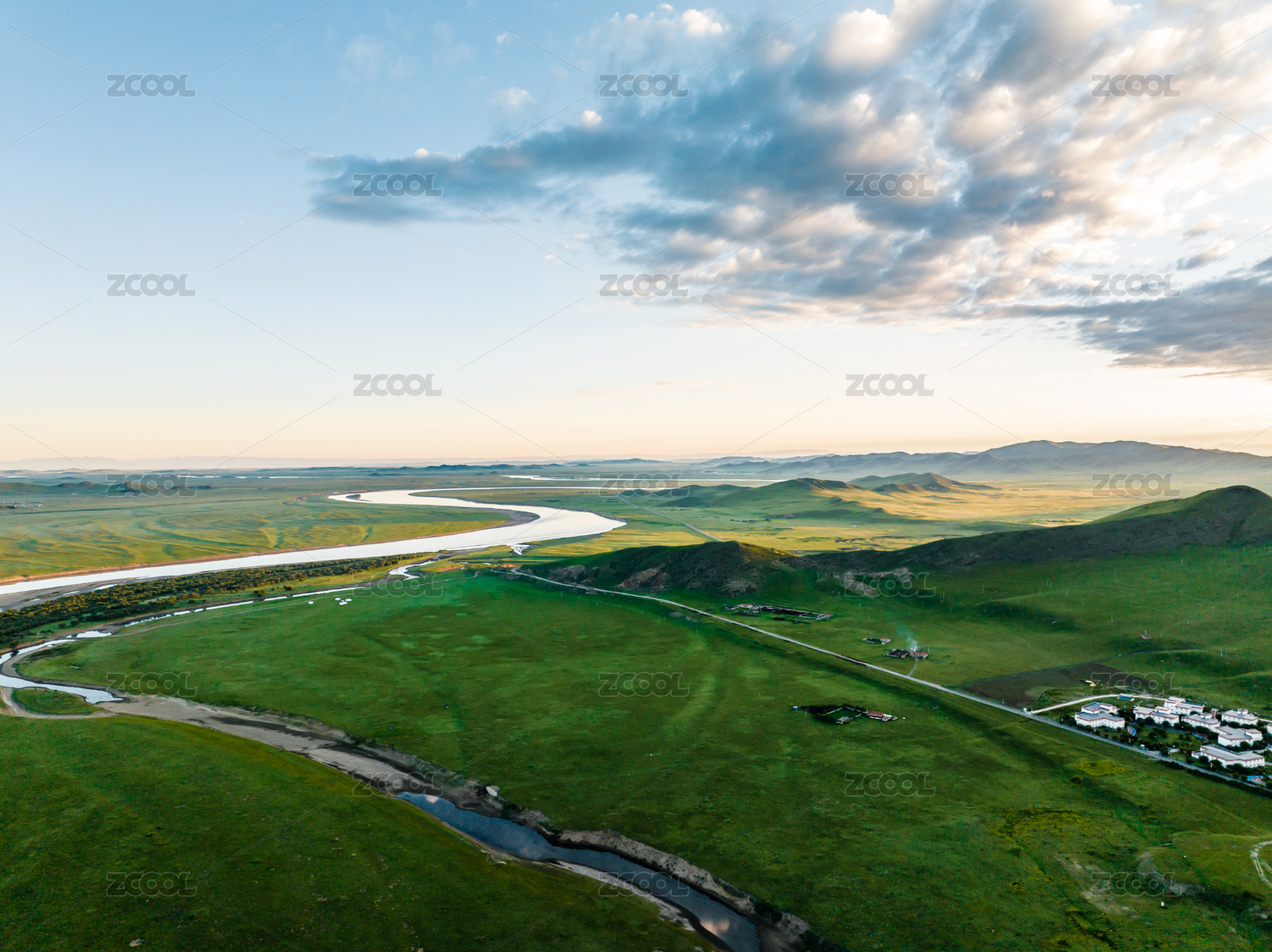 中国内蒙古呼伦贝尔大草原莫尔格勒河谷晚霞