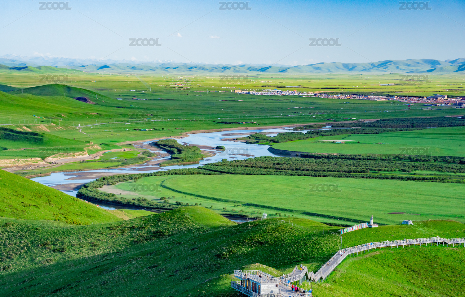 甘肃甘南黄河大草原玛曲阿万仓湿地蜿蜒河流