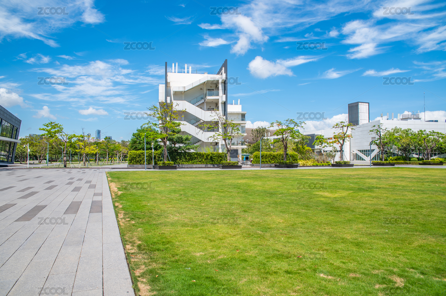 现代,城市,摩天大楼,建筑,草地,公园,无人,户外,环境,绿化