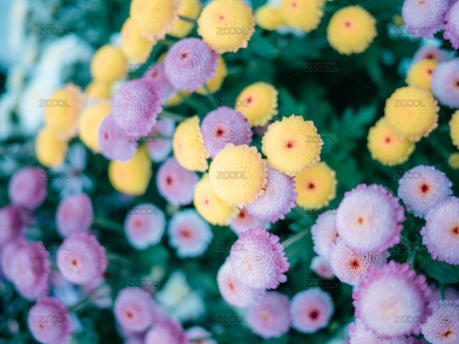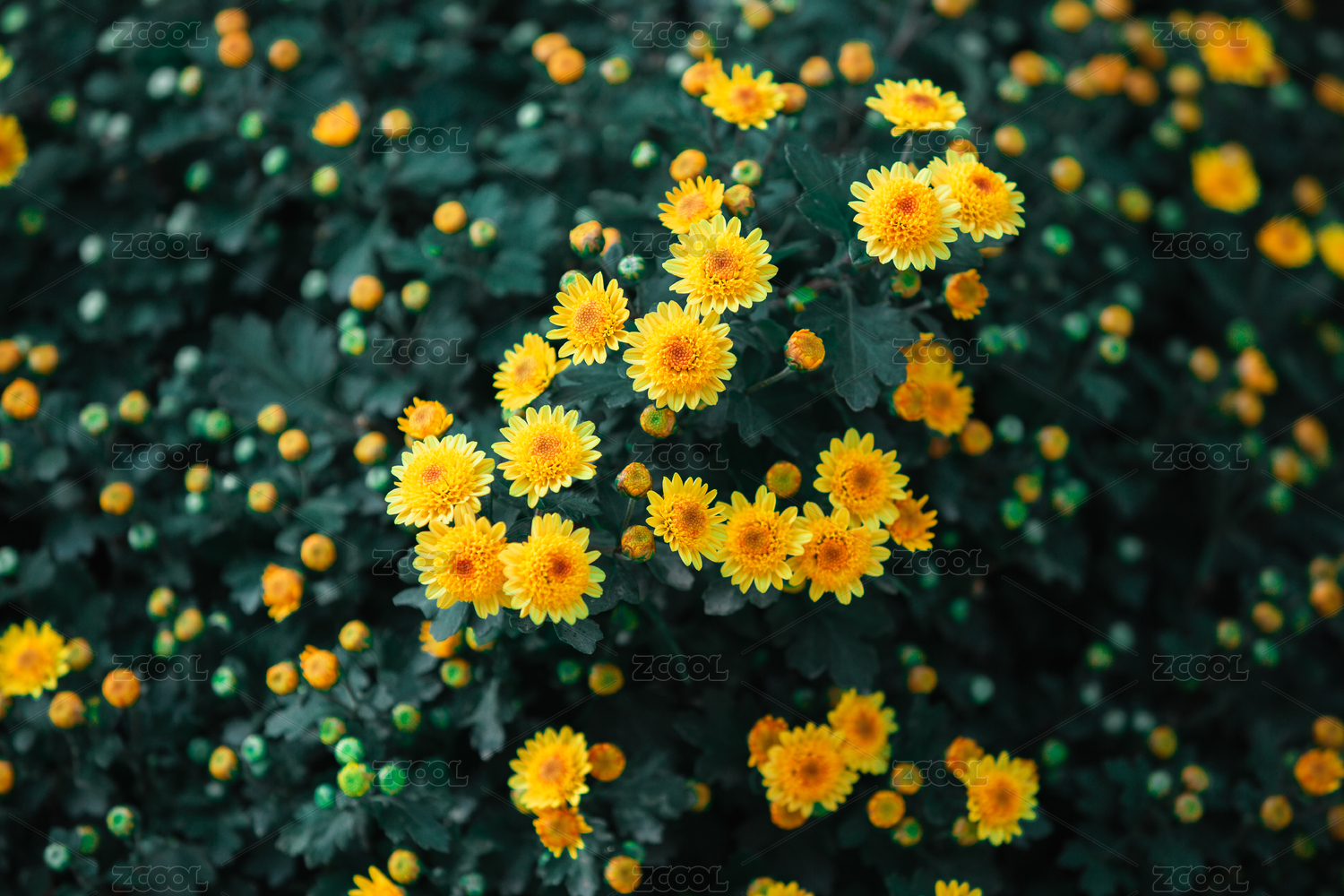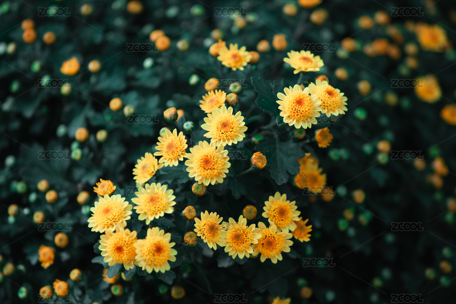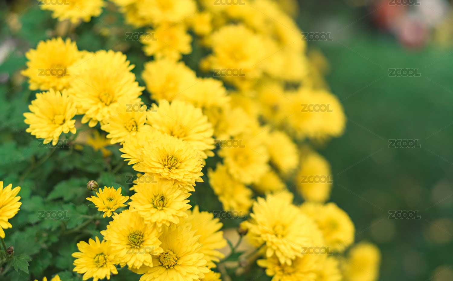 秋天的公园里颜色鲜艳的菊花在阳光下绽放