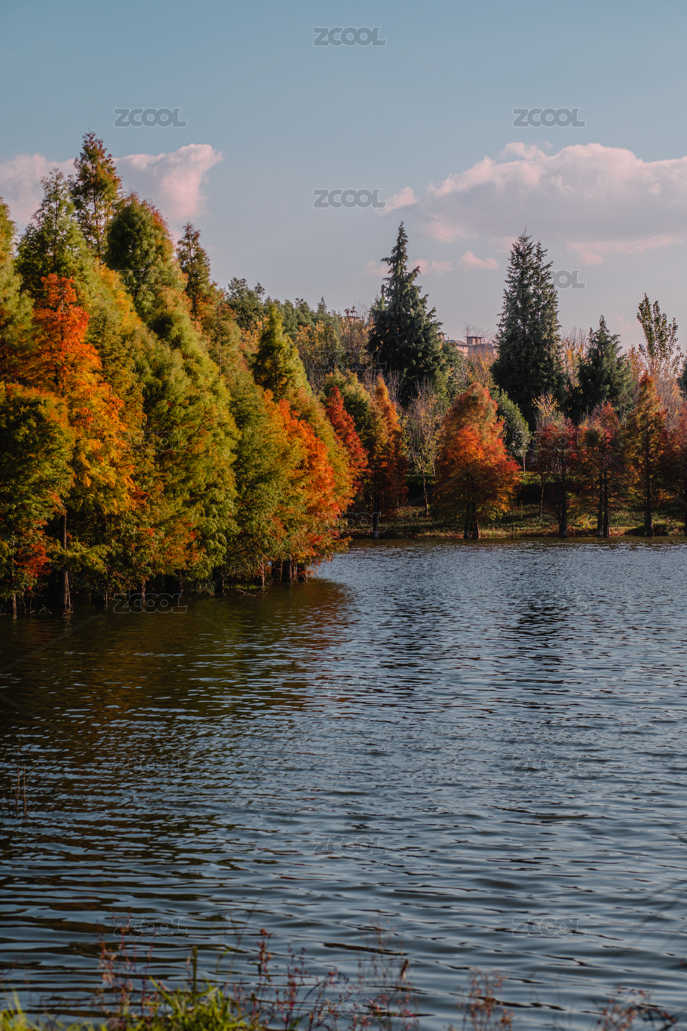 中国云南昆明滇池湿地水杉林蓝天自然风景