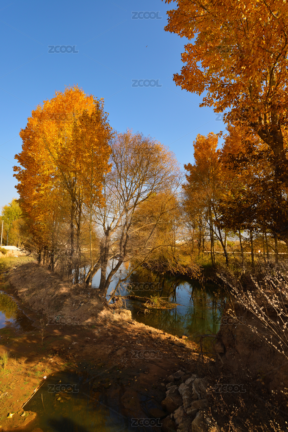 秋天中国云南大理沙溪古镇黑惠江秋色美景