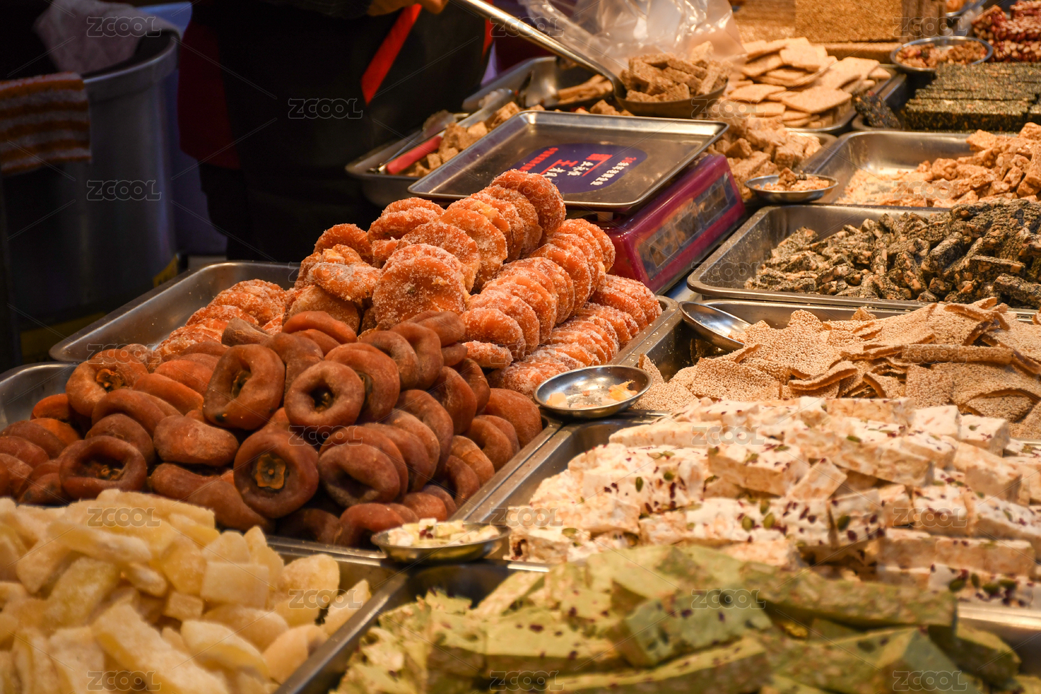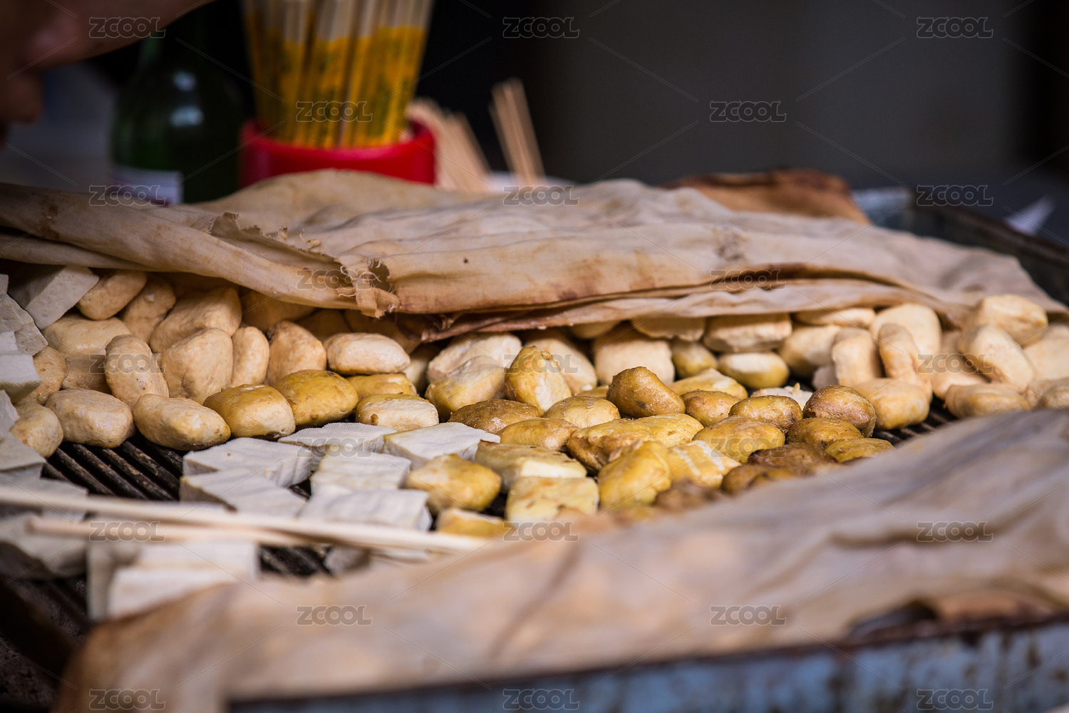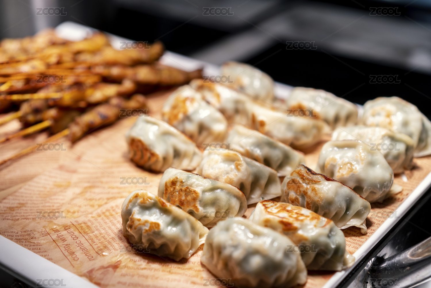 自助餐厅里美味的南瓜饼盛放在三角形竹篓内