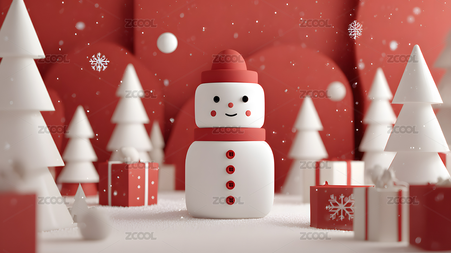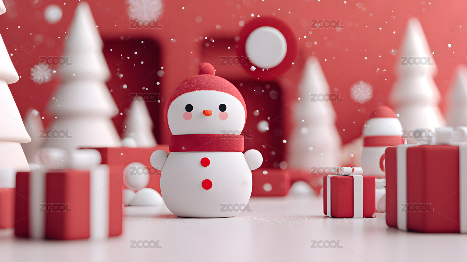 卡通可爱雪人红色背景