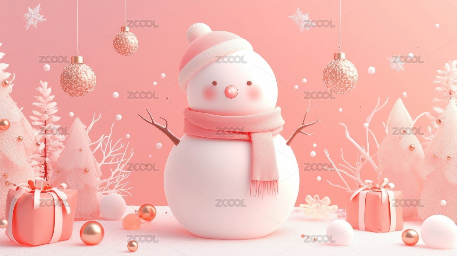 粉色圣诞雪人装饰场景