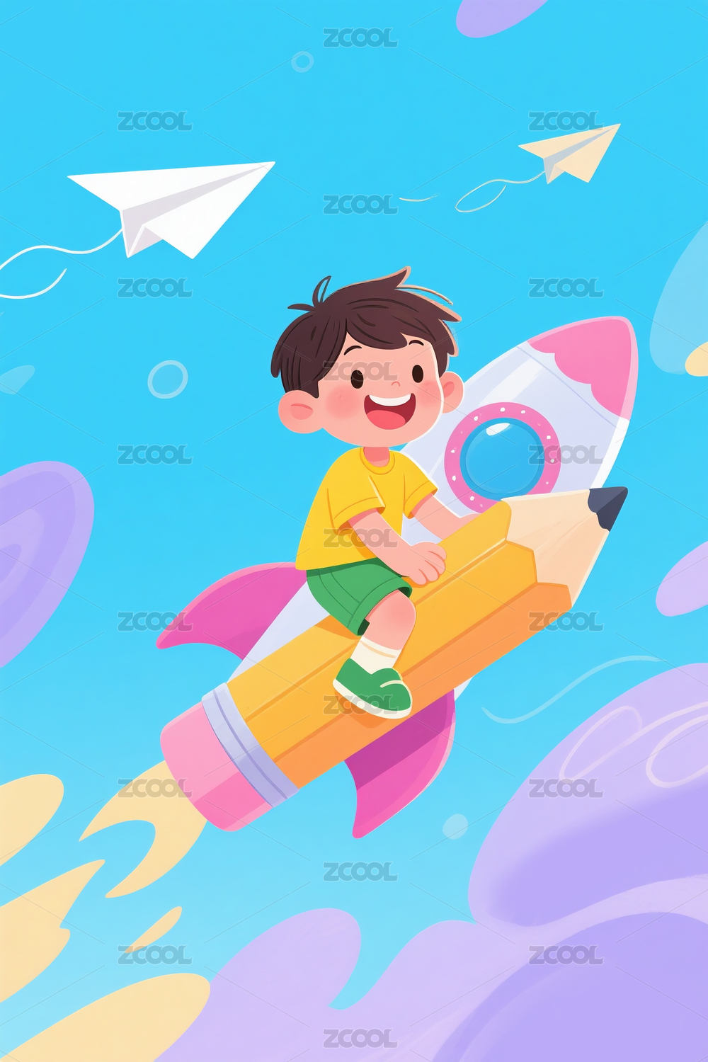 坐铅笔火箭的小男孩