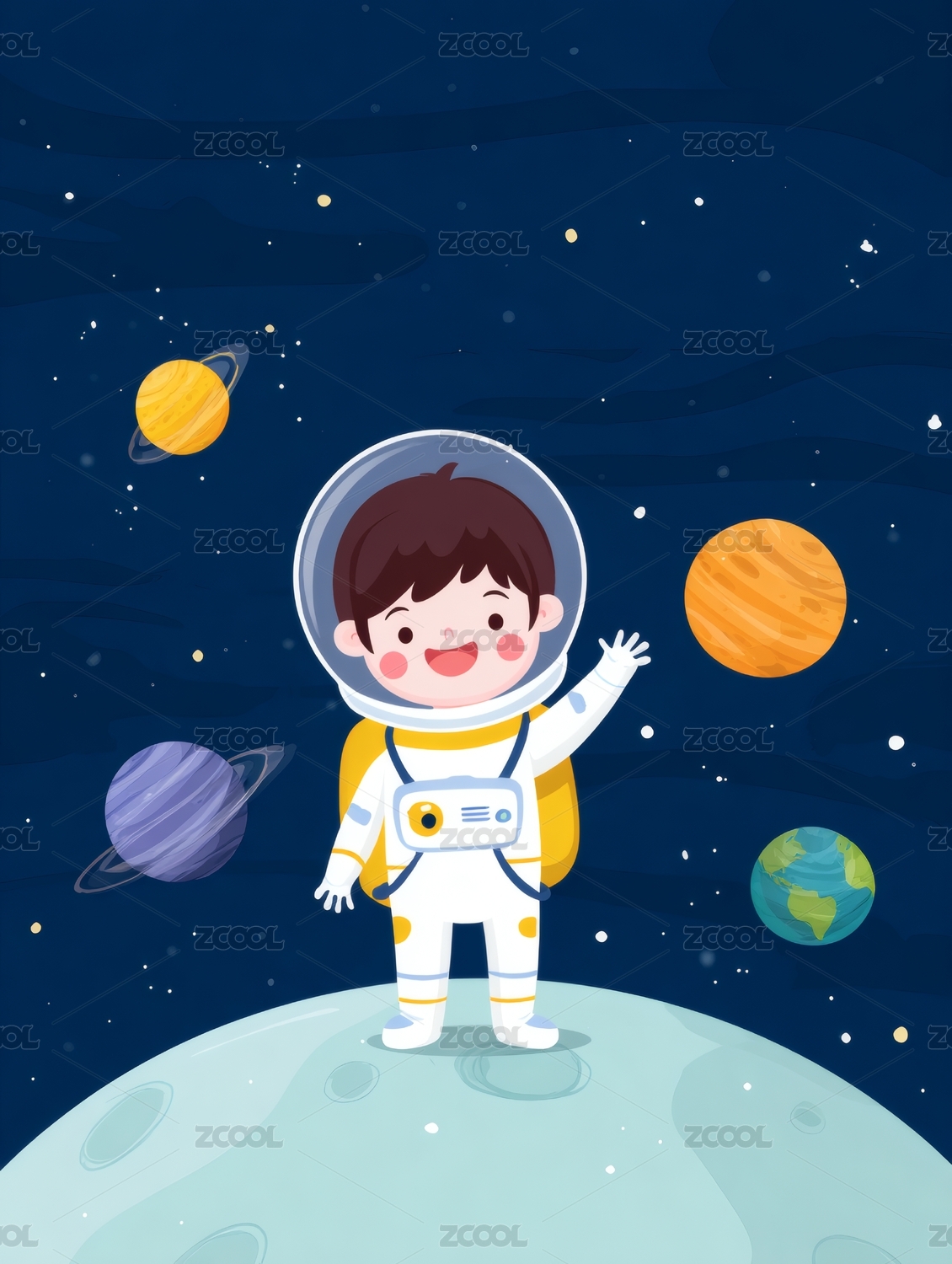 卡通可爱宇航员航天科技插画