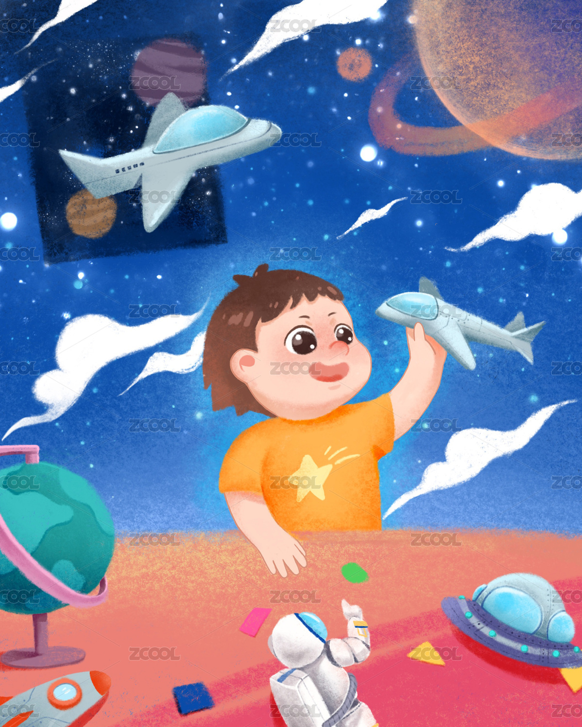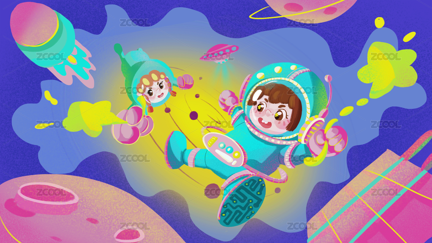 太空宇宙儿童节插画