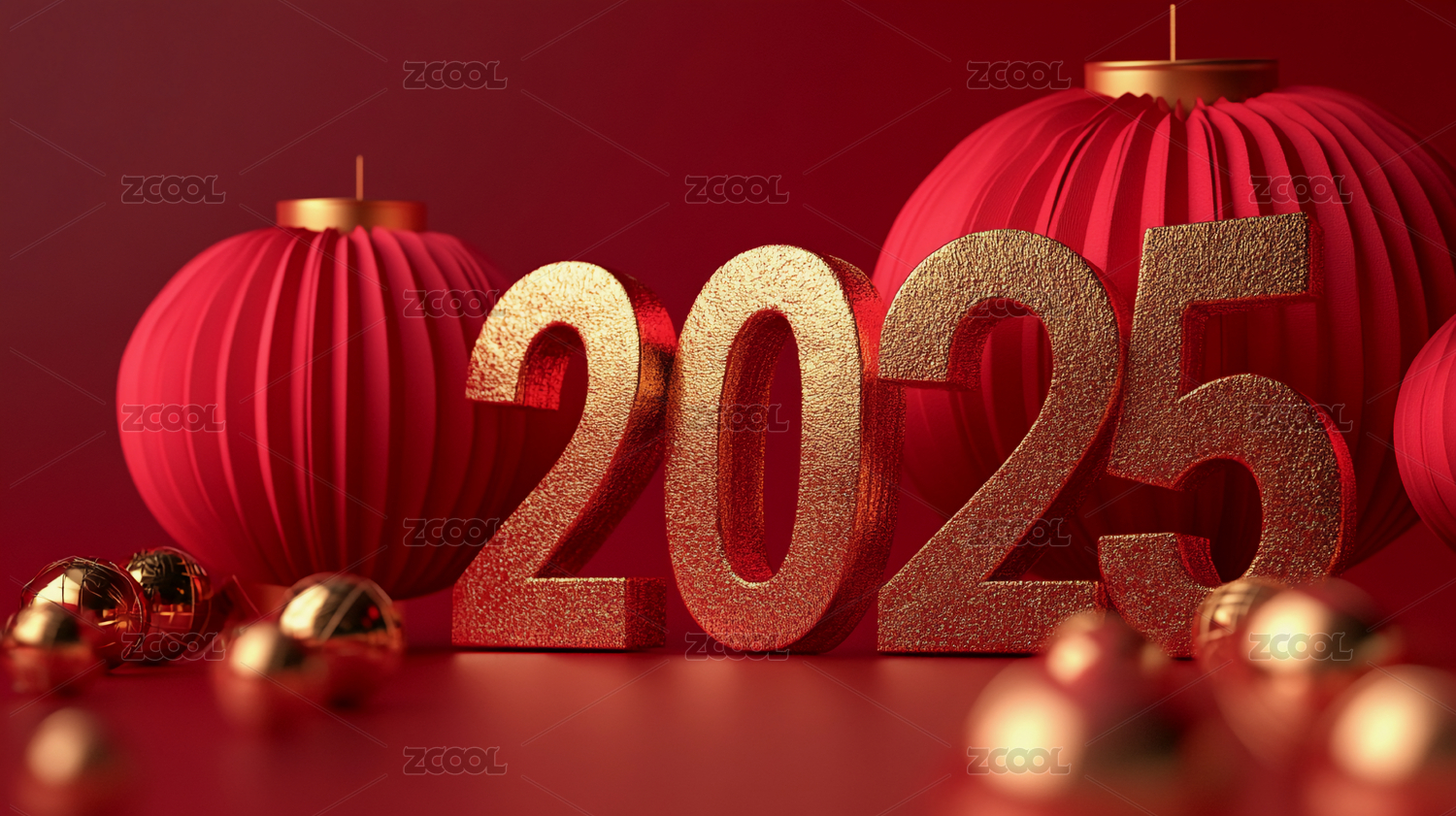 蛇年新年元旦节日喜庆“2025”红色灯笼