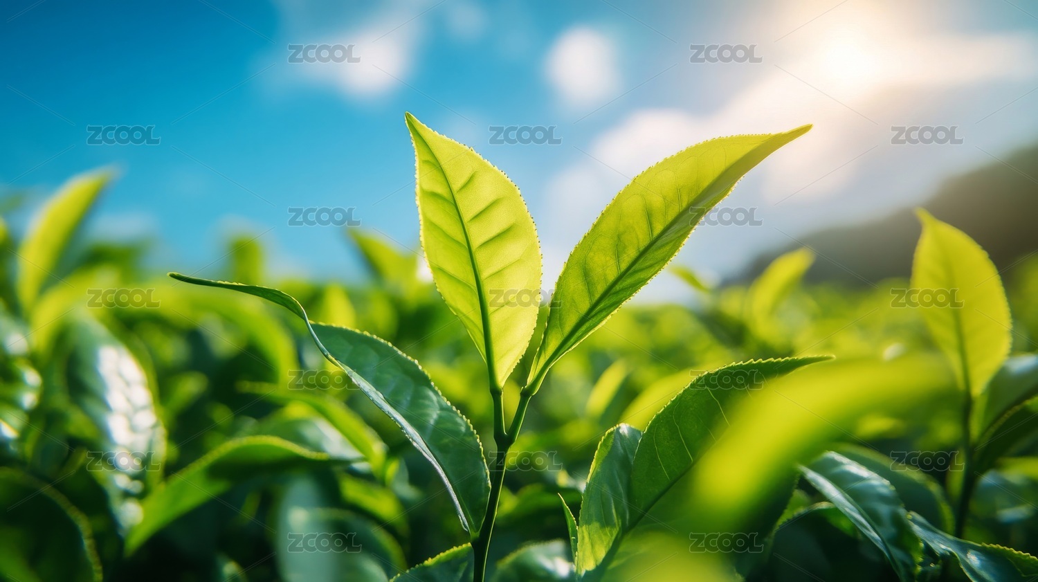 阳光下的茶叶特写