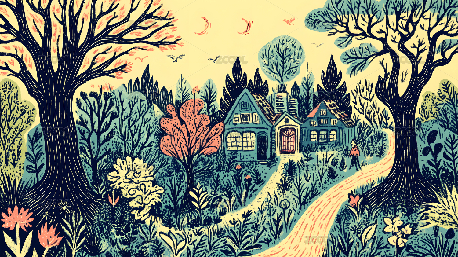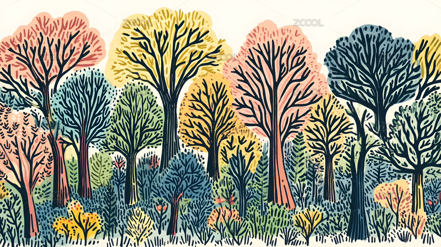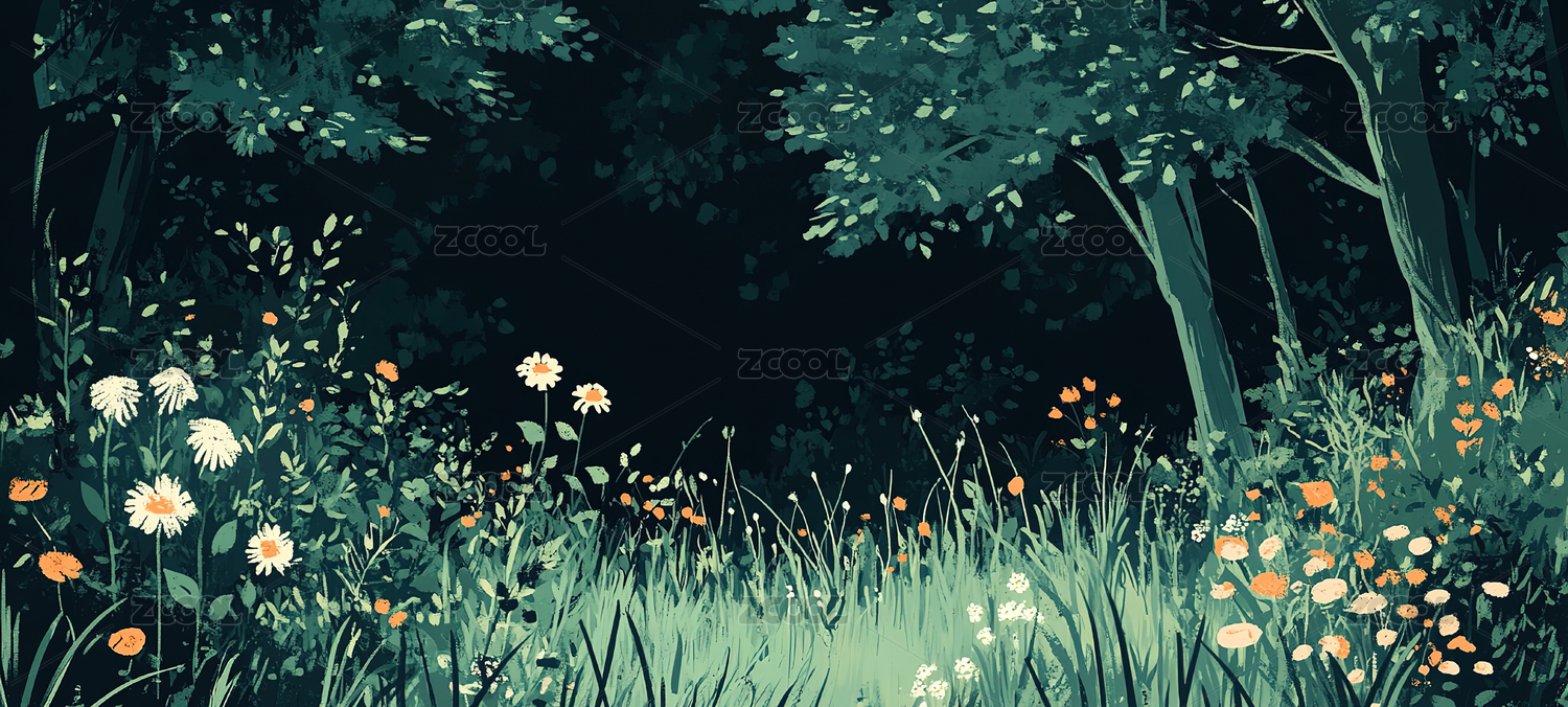 线条植物森林插画
