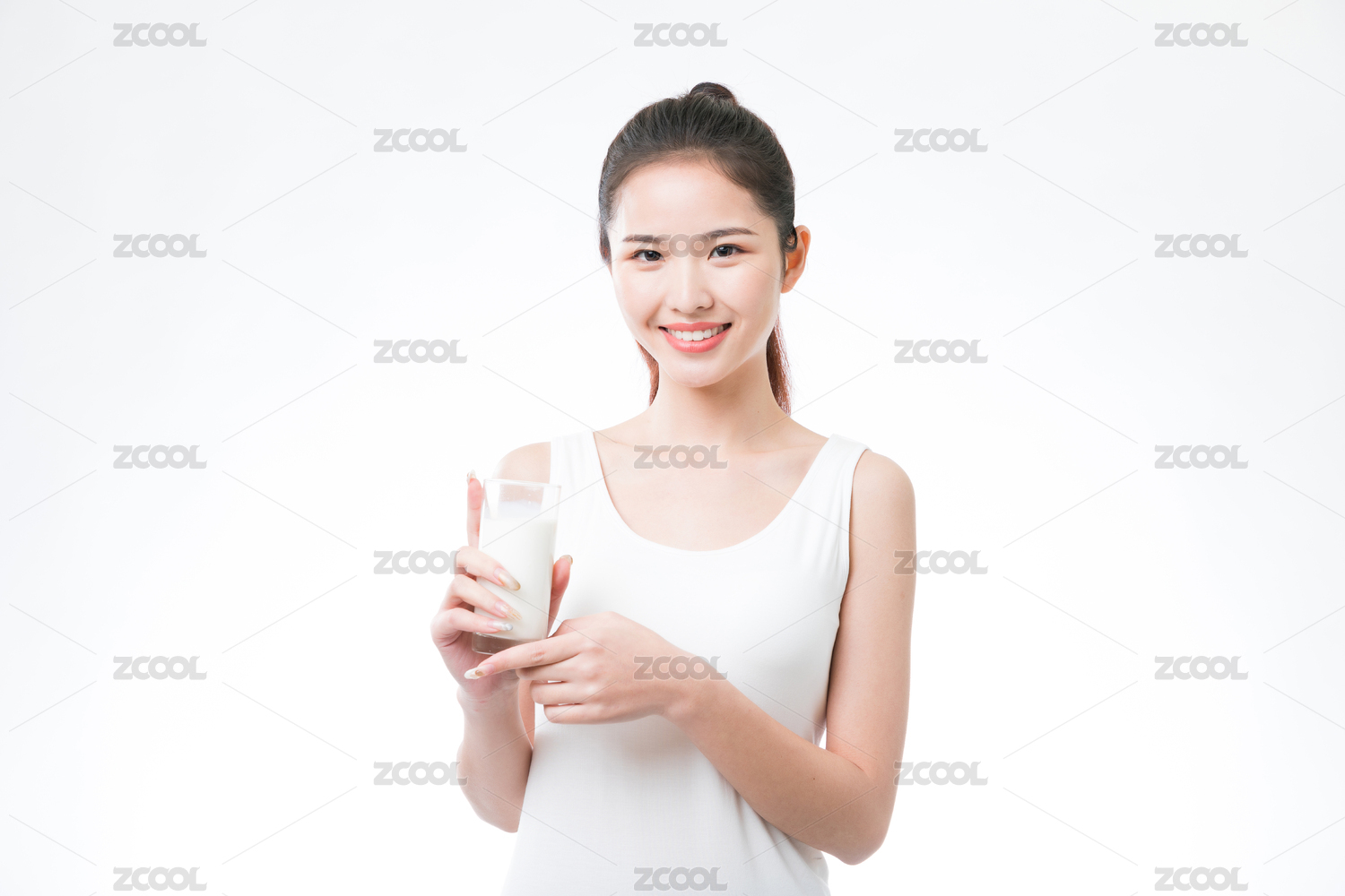 青年活力女生手拿一杯牛奶展示