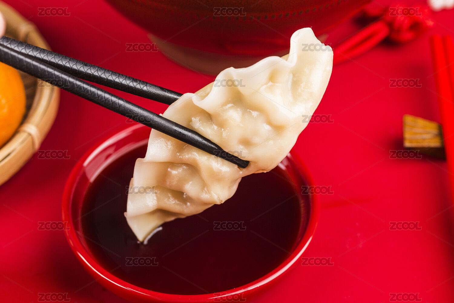 喜庆红底上的美味饺子