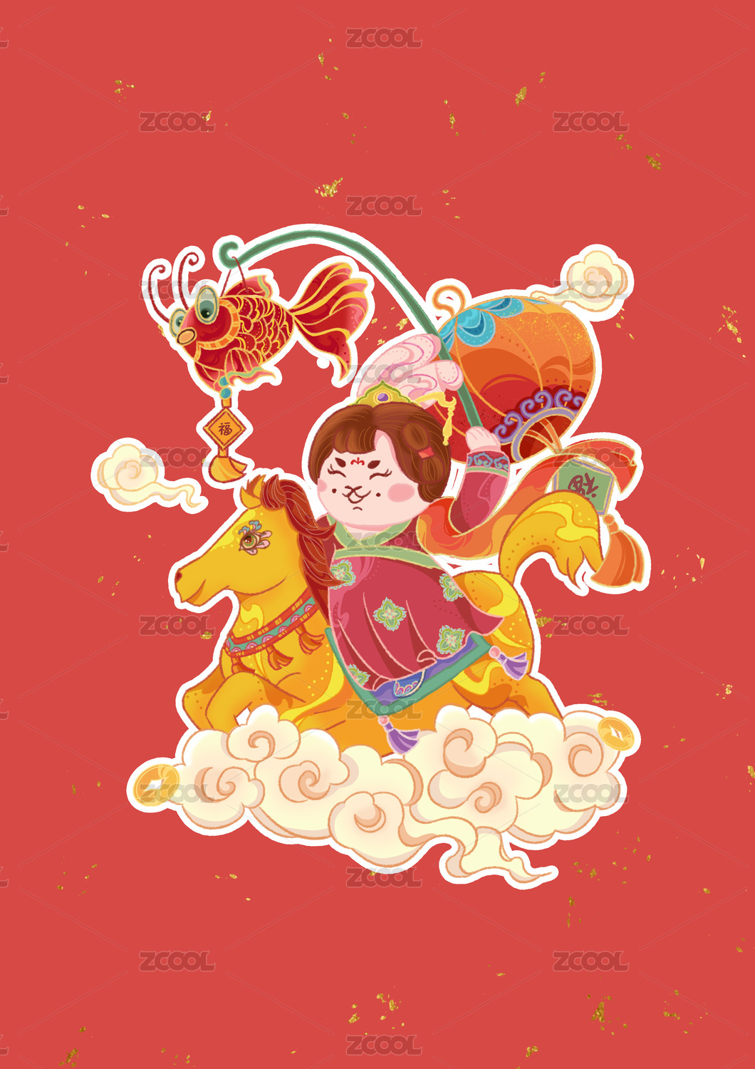 节日,福字,新年,插画,国潮,产品,包装,物料,装饰,红色