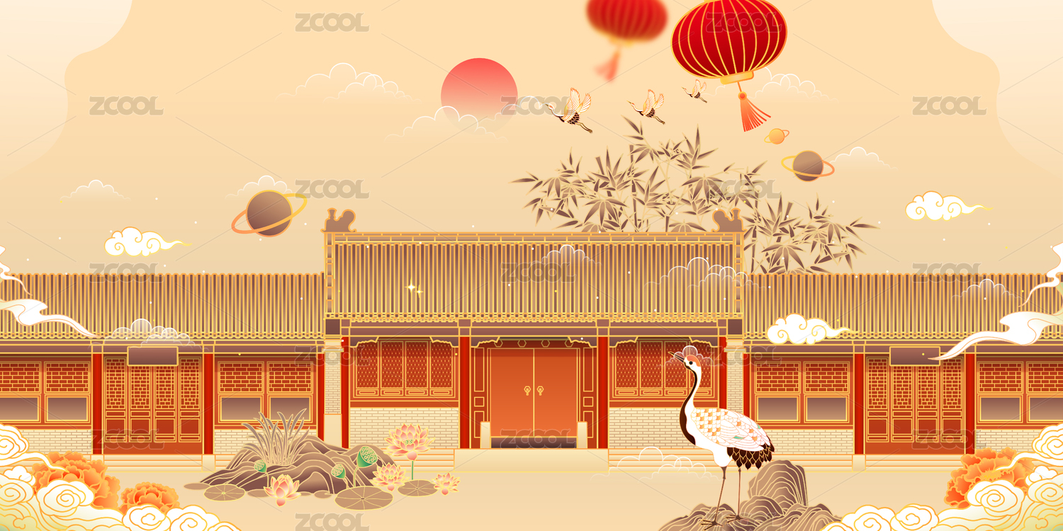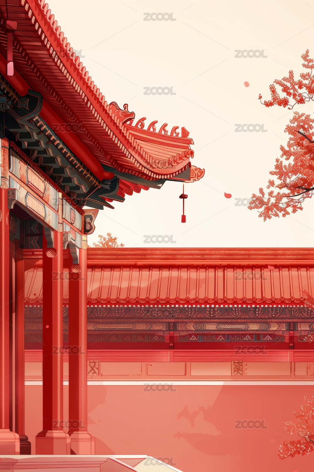 插画,春节,传统文化,工笔画,中国文化,对联,户外,历史,建筑,灯笼