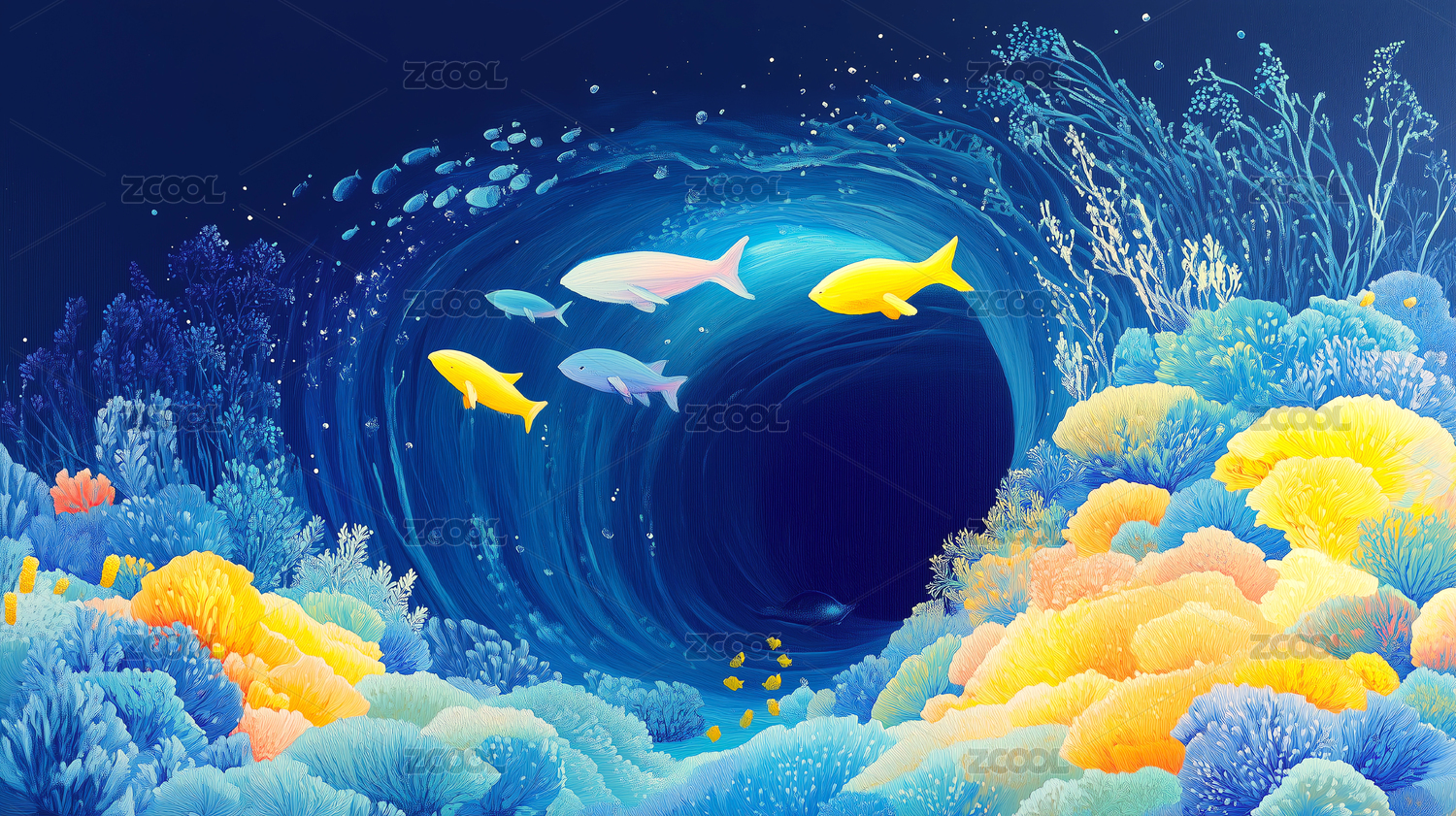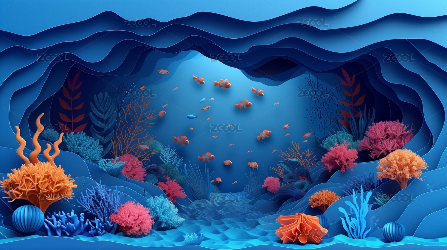 海底世界3D海洋生物珊瑚梦幻唯美自然背景