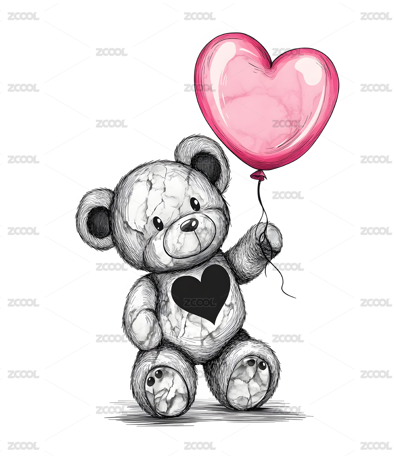 拿着爱心气球的小熊