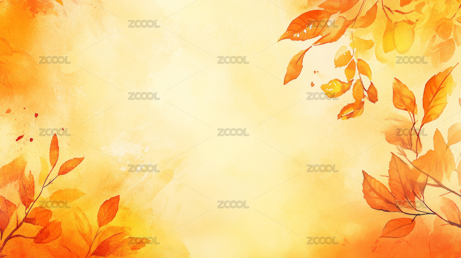 水彩风格水墨晕染秋季黄叶背景