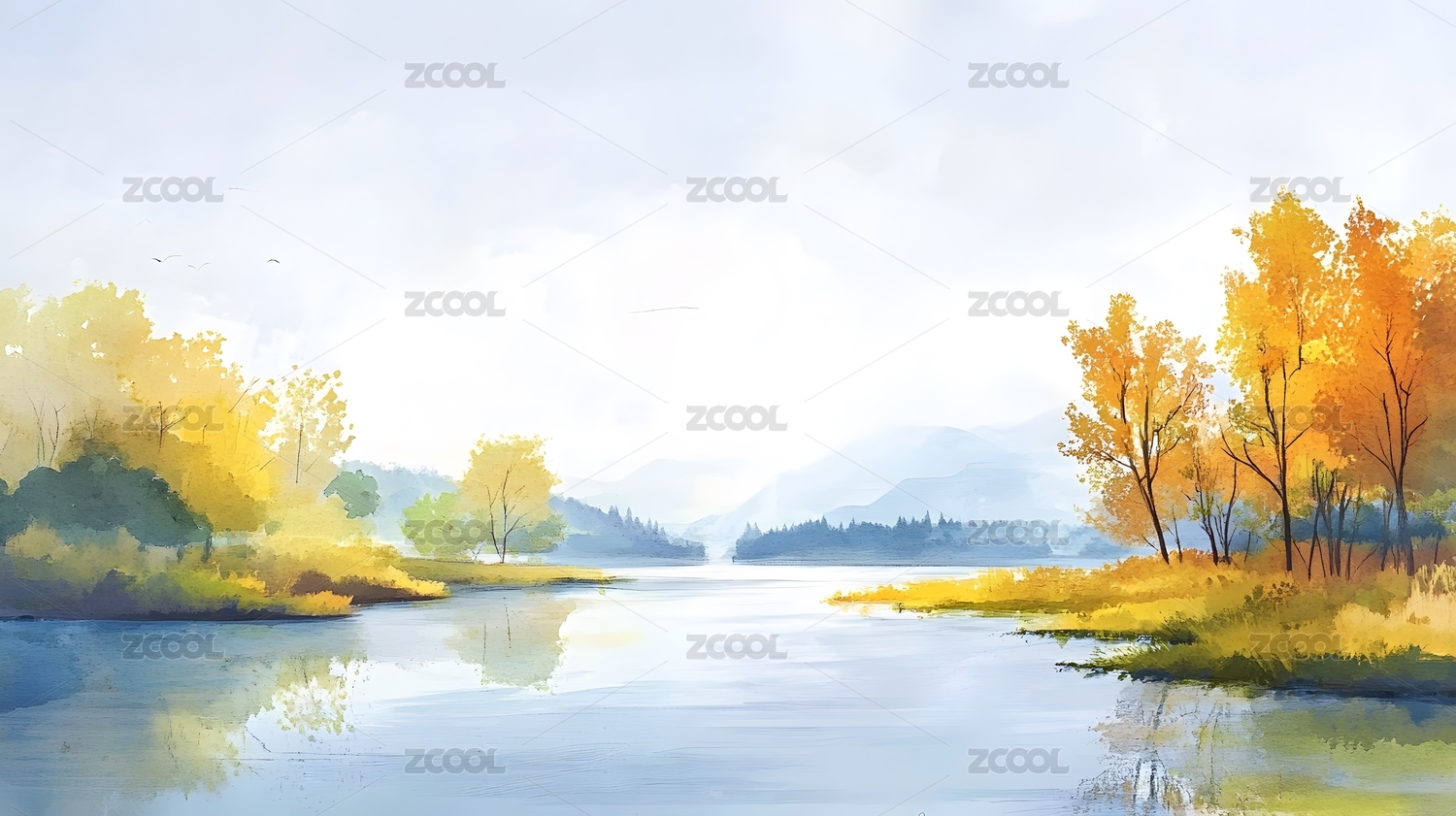 蓝色调的水墨风山水画,水墨风意境山水画概