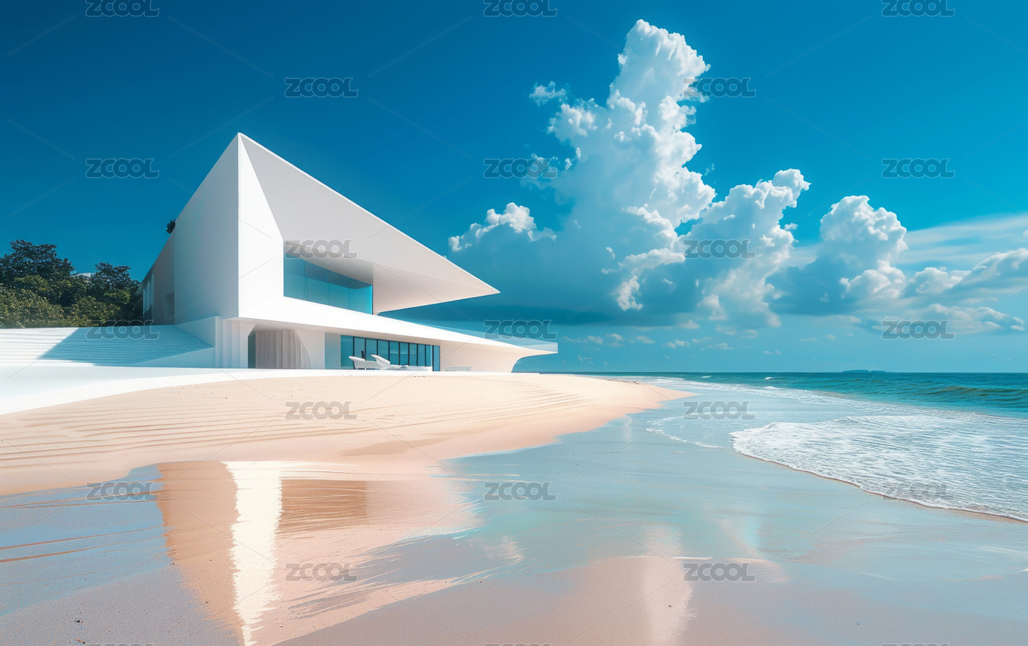 现代简约建筑与蓝天大海的完美融合