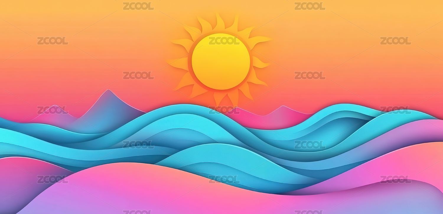 梦幻彩色山峦与太阳