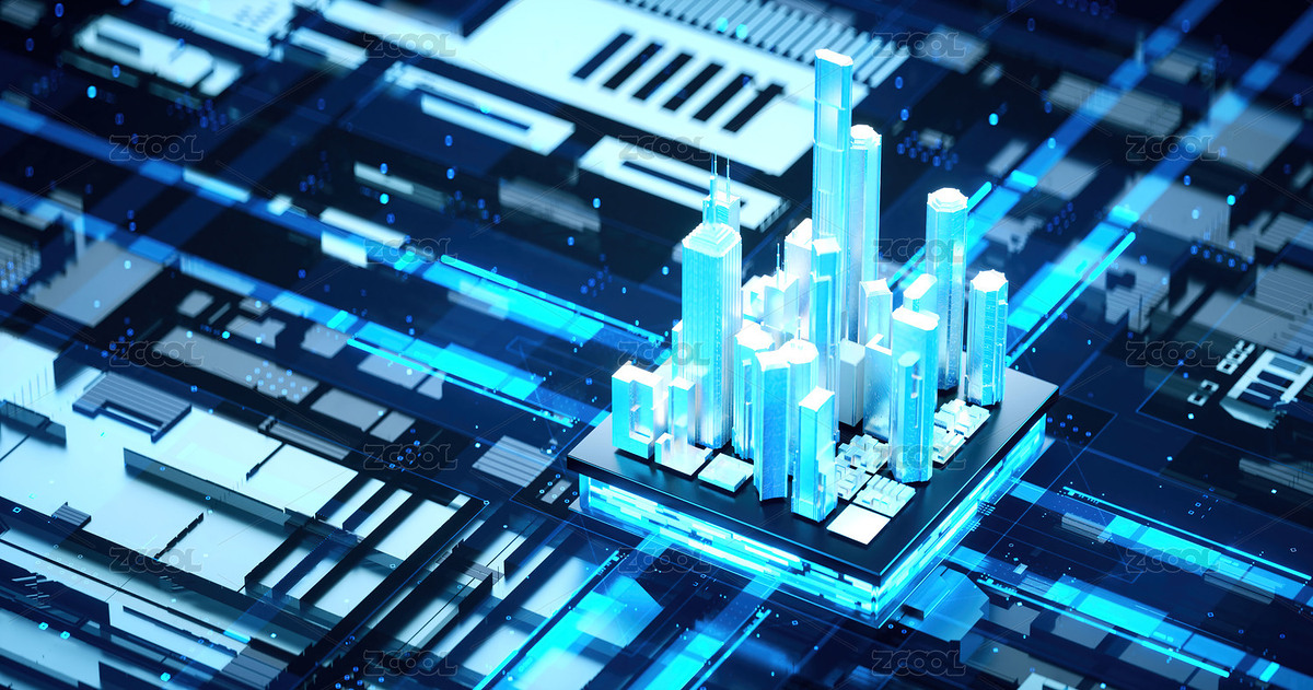 芯片金融科技赛博朋克人工智能三维渲染电路