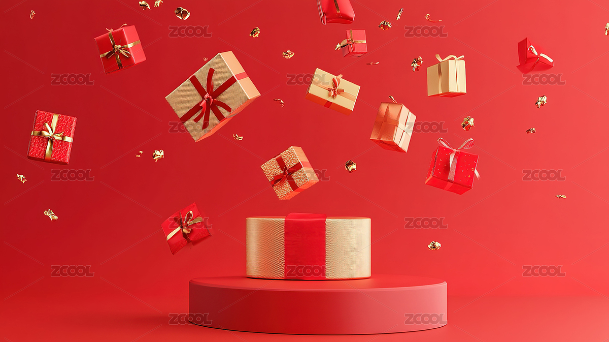 红色背景下的礼物