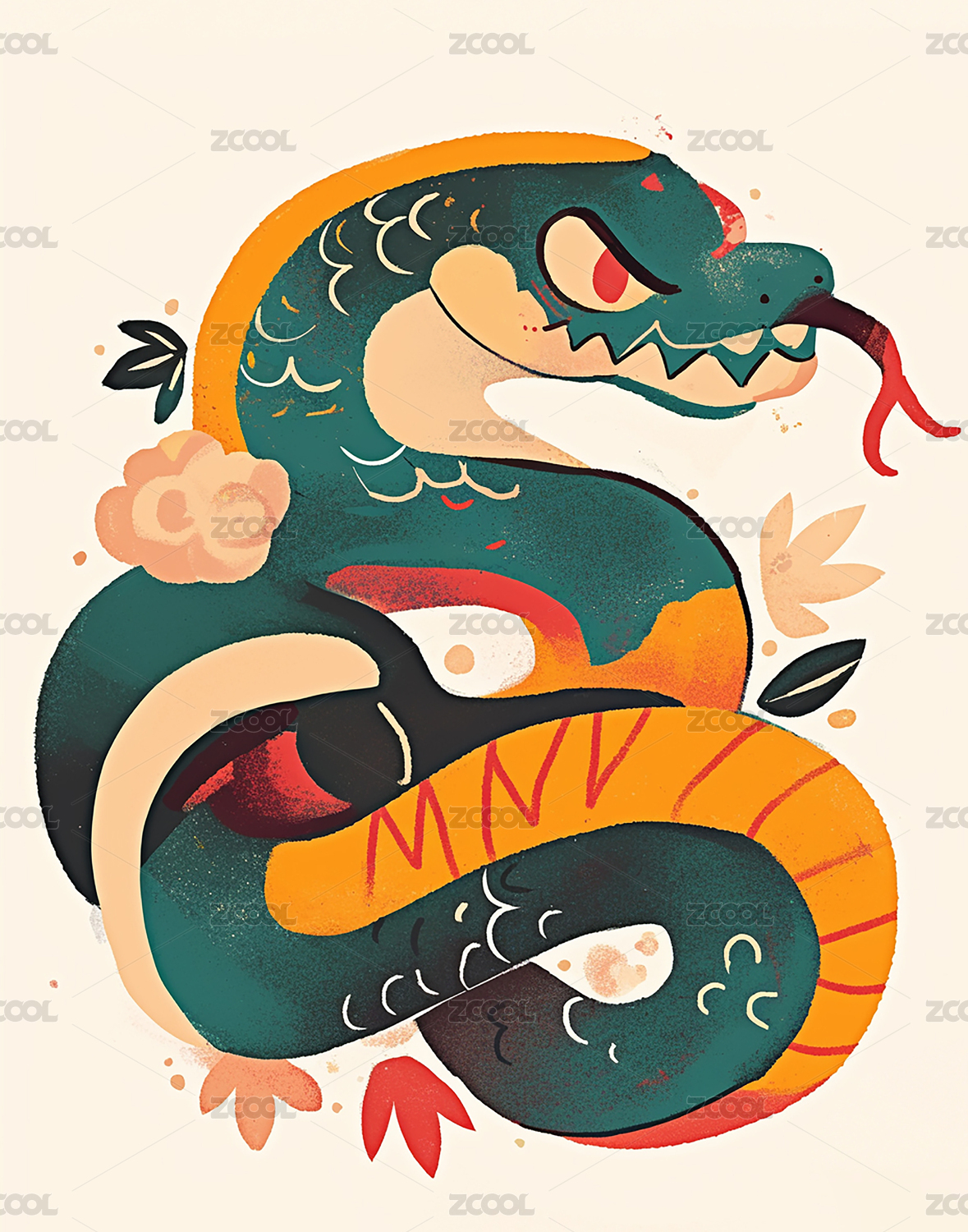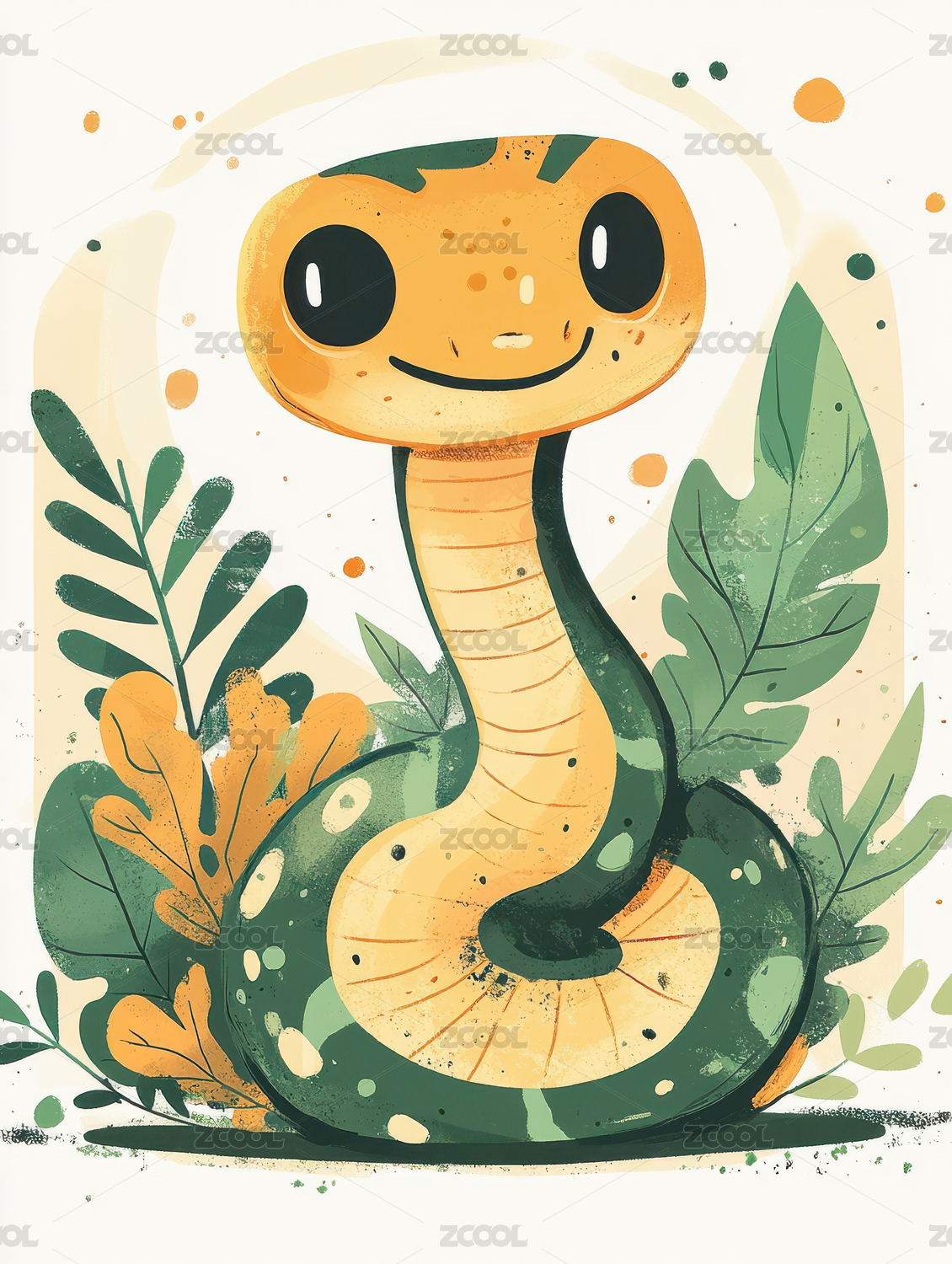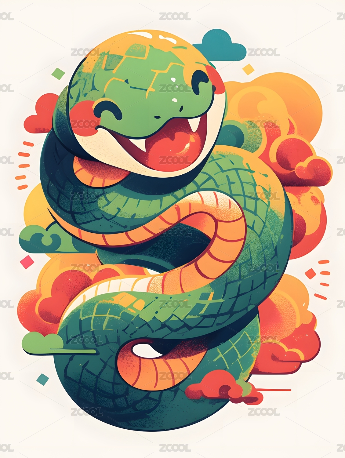 卡通蛇年2025生肖蛇T恤图案印花插画