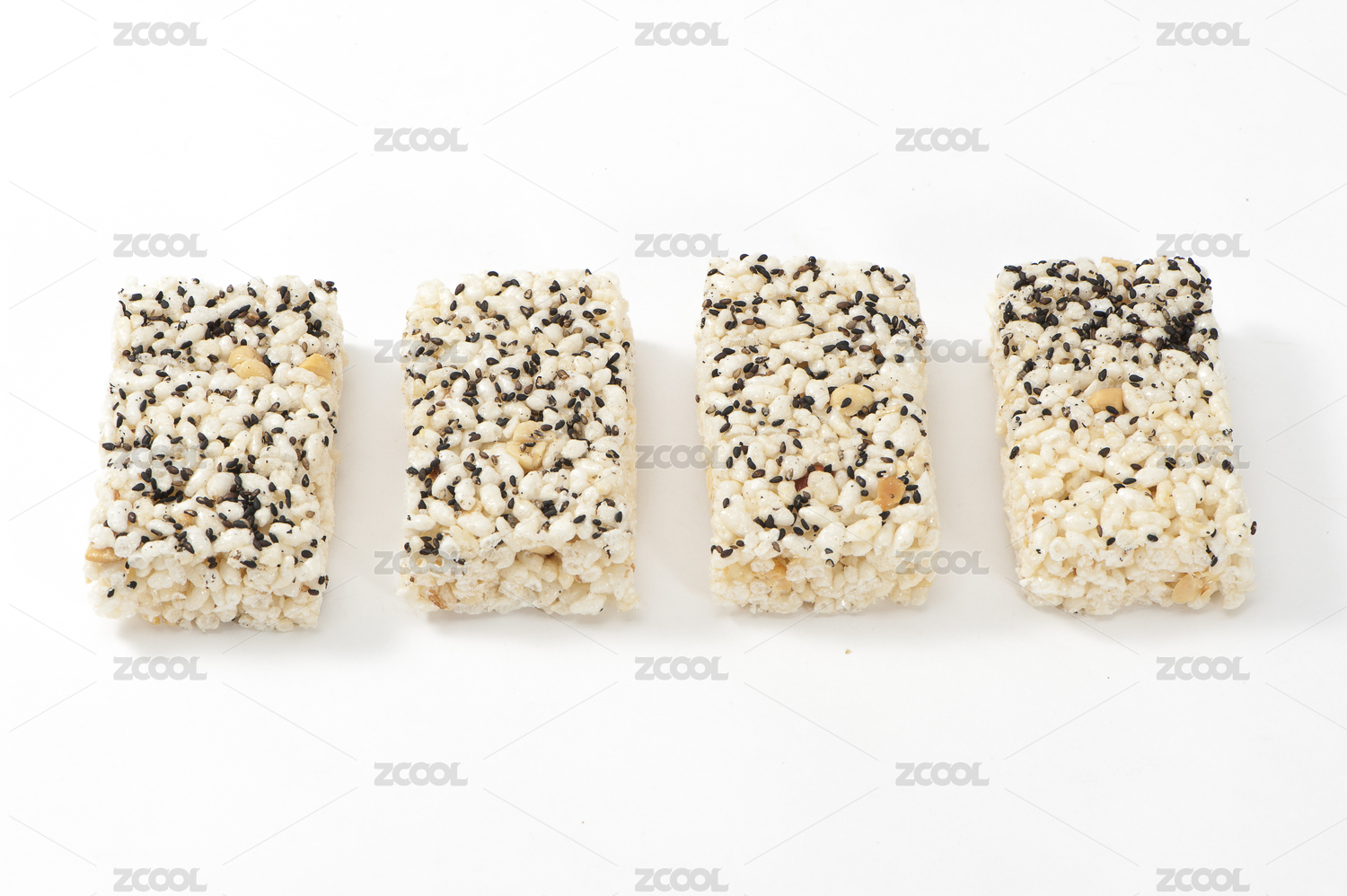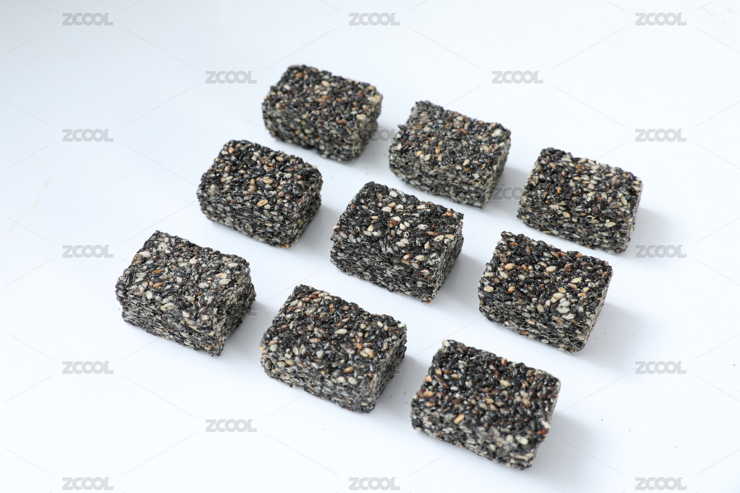 白色背景上摆放的黑芝麻酥糖