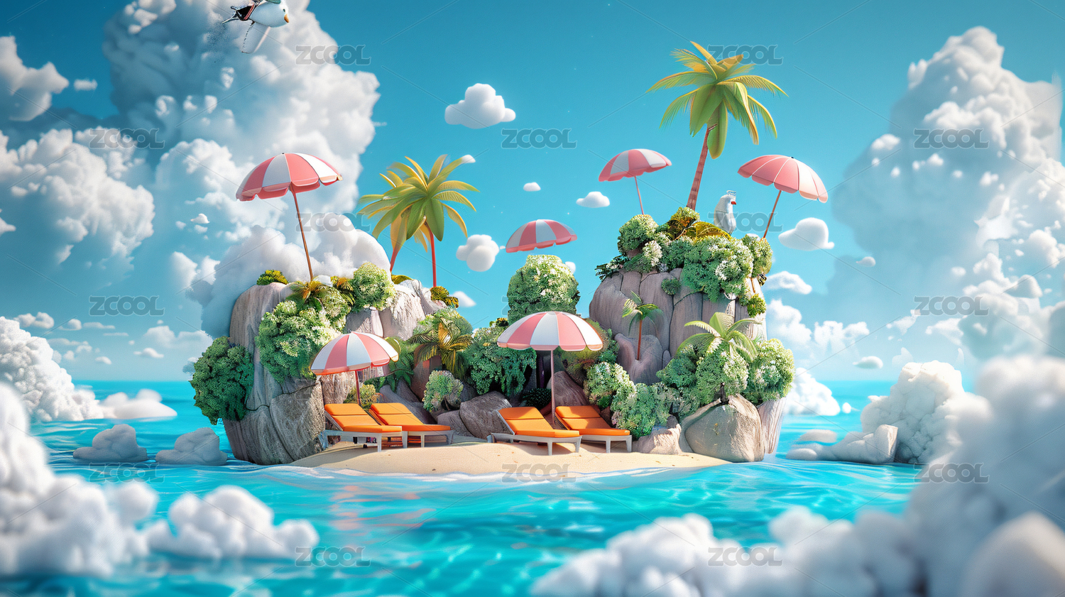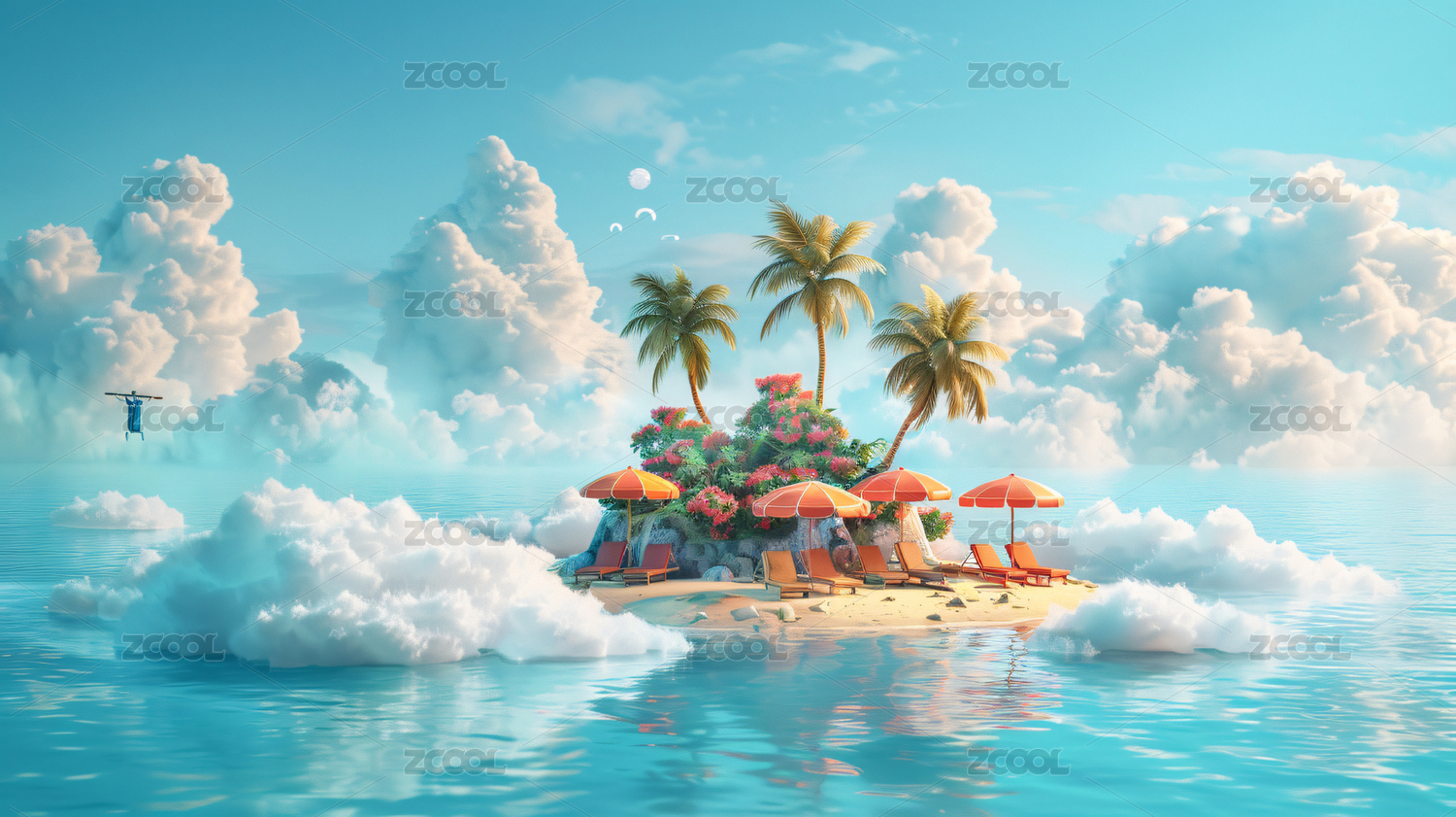 夏天,自然,假日,风景,海洋,天空,度假,椰子树,海滩,小暑