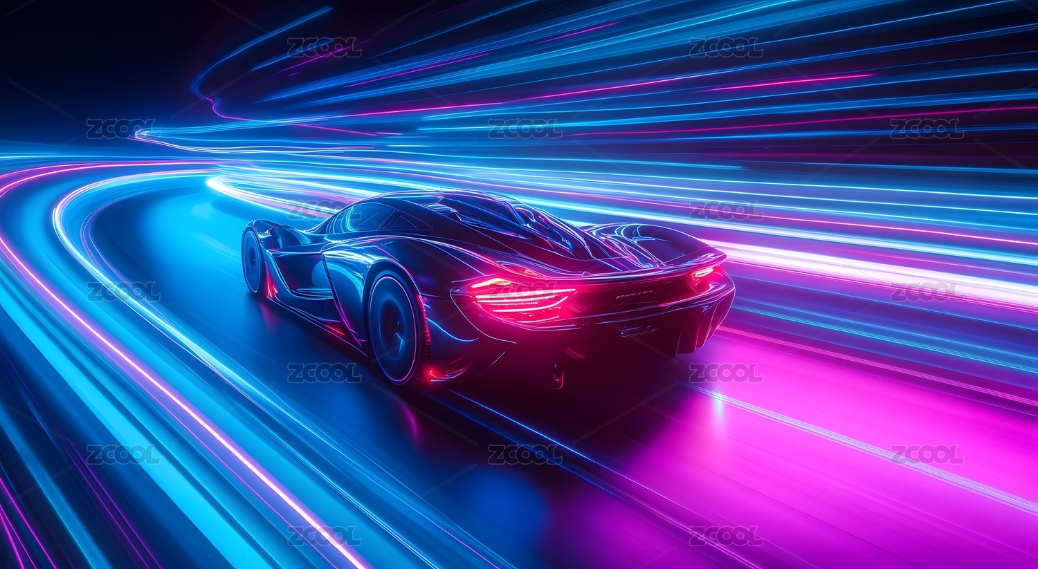 新能源自动驾驶电动汽车行驶高速霓虹灯光速