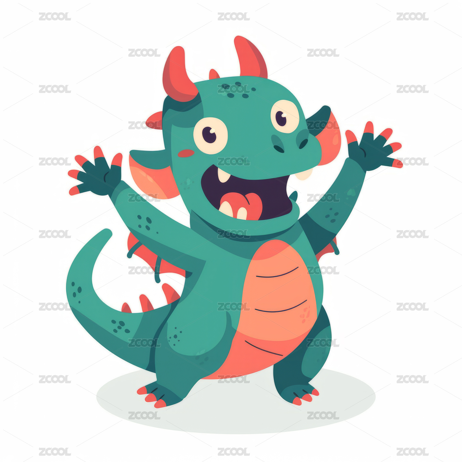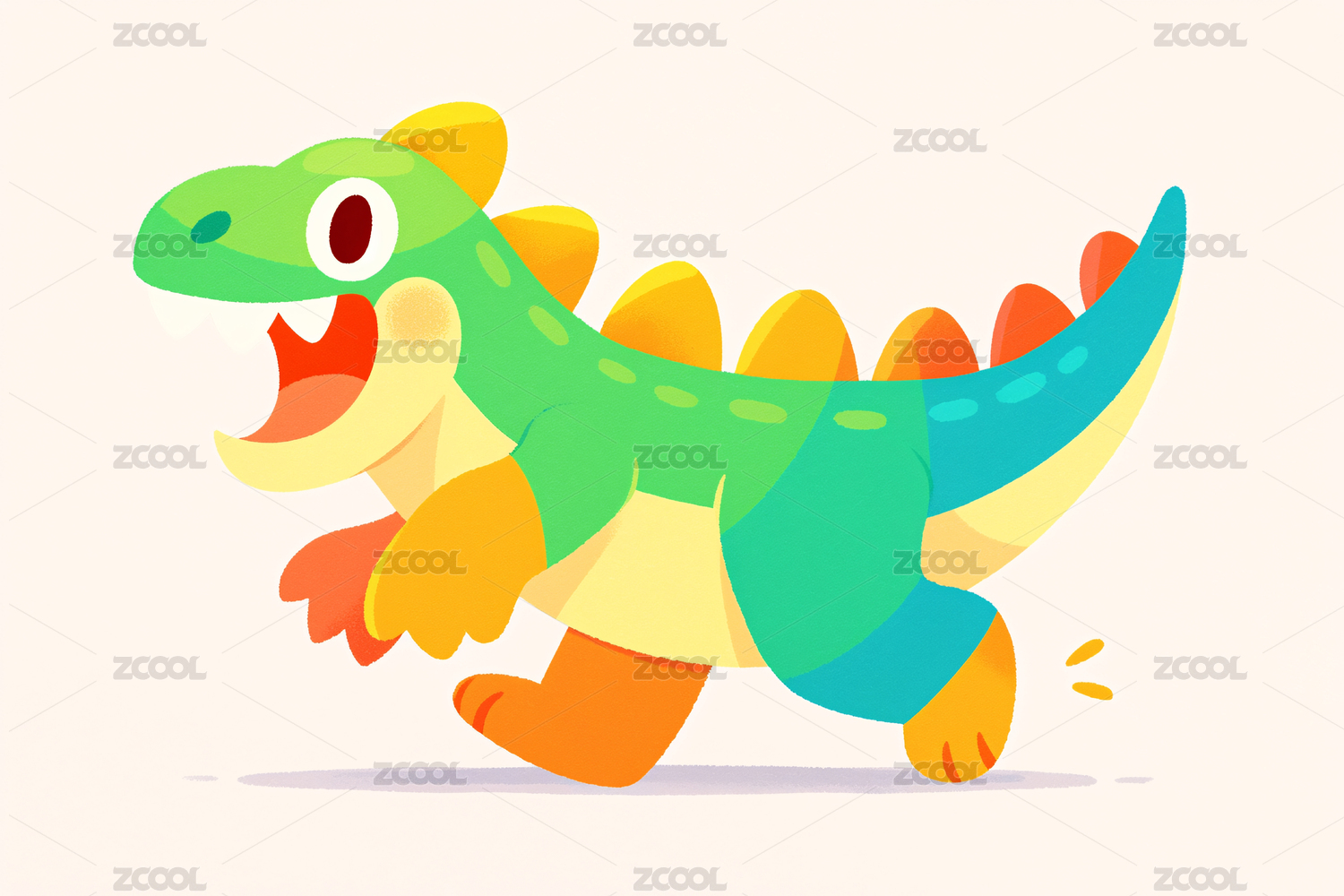 手绘,插画,艺术,炫彩,恐龙,IP形象,绚丽多彩,可爱,呆萌,卡通