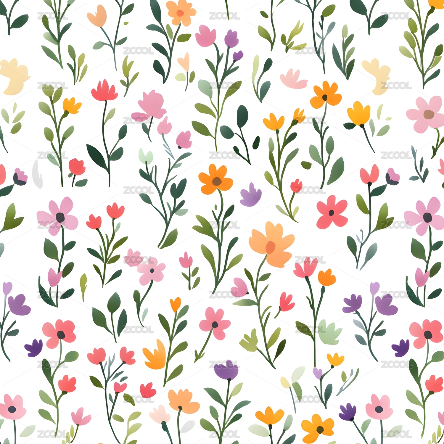 矢量,扁平化,植物,花朵,叶子,图案,包装,无缝,印花,四方连续